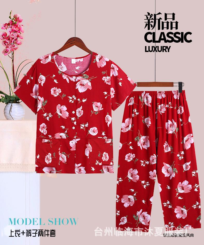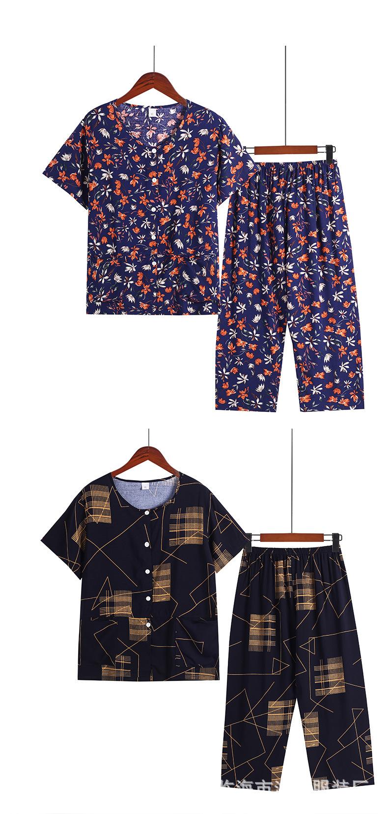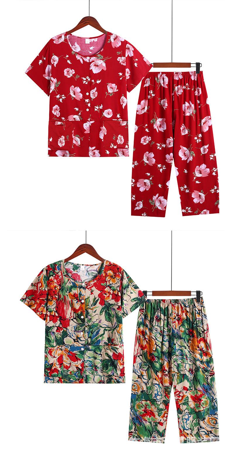 Pijama de verano de algodón y seda para madres de mediana edad y mayores, cárdigan para mujer con botones, traje transpirable, ropa para el hogar, manga corta con bolsillo