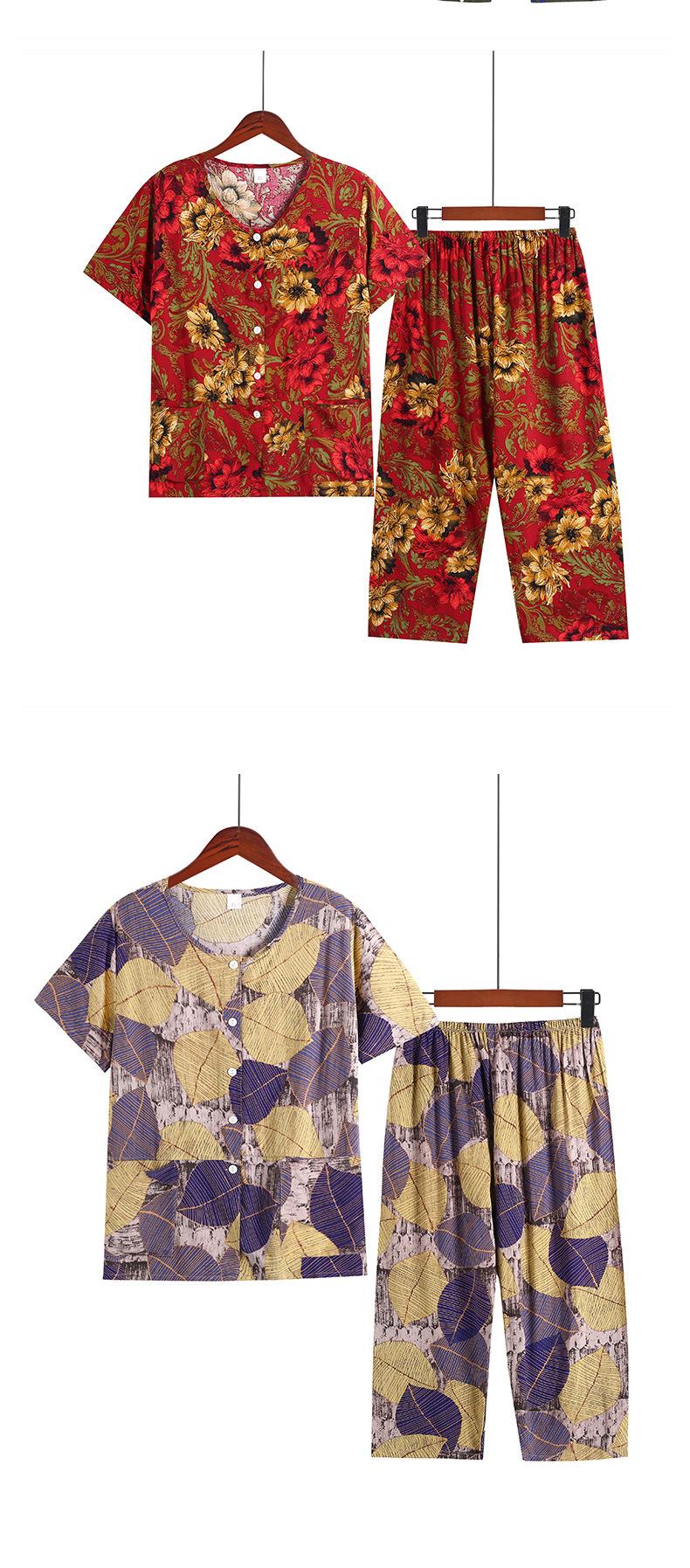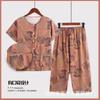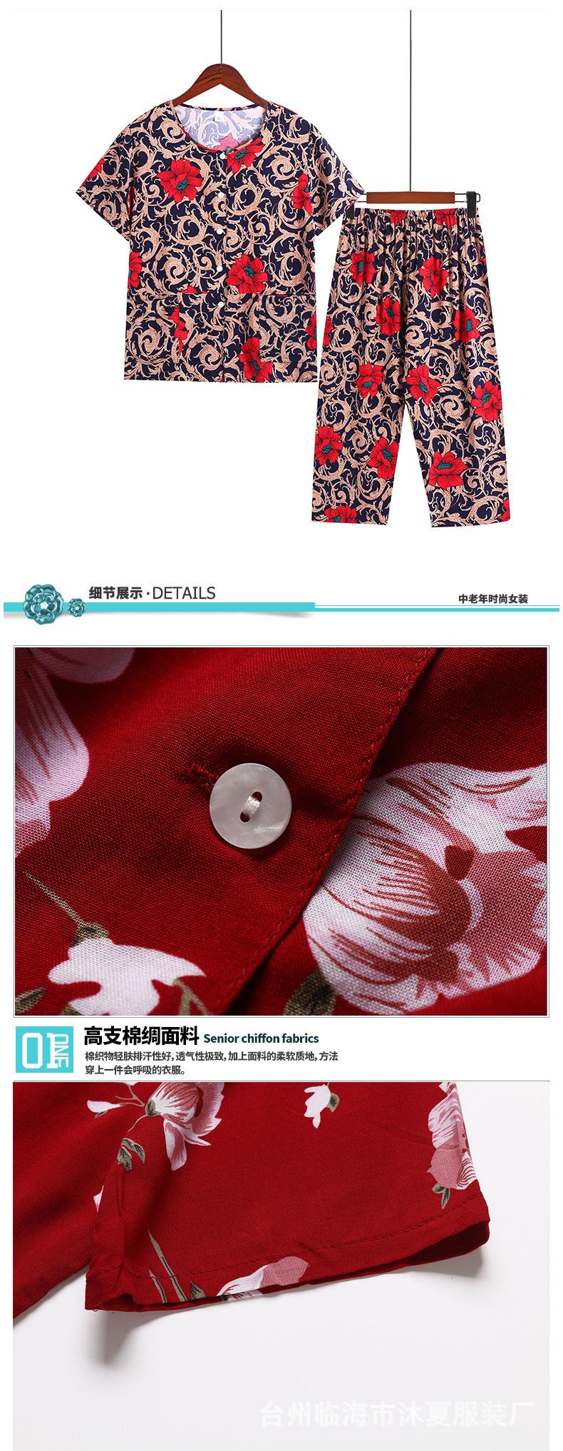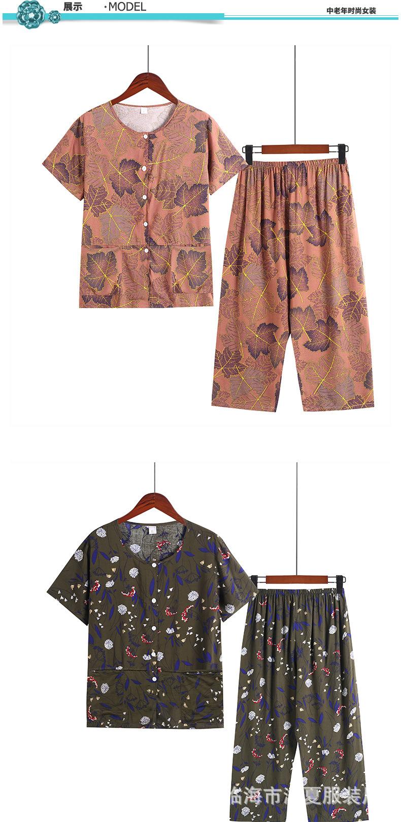 Pijama de verano de algodón y seda para madres de mediana edad y mayores, cárdigan para mujer con botones, traje transpirable, ropa para el hogar, manga corta con bolsillo