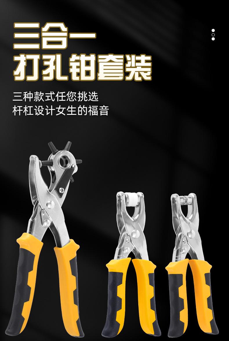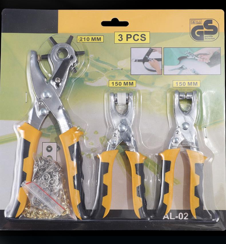 Alicates de perforación para correas, juego de tres piezas, alicates de ojo de pollo, alicates de cinco garras, máquina perforadora de correas para el hogar, venta al por mayor transfronteriza