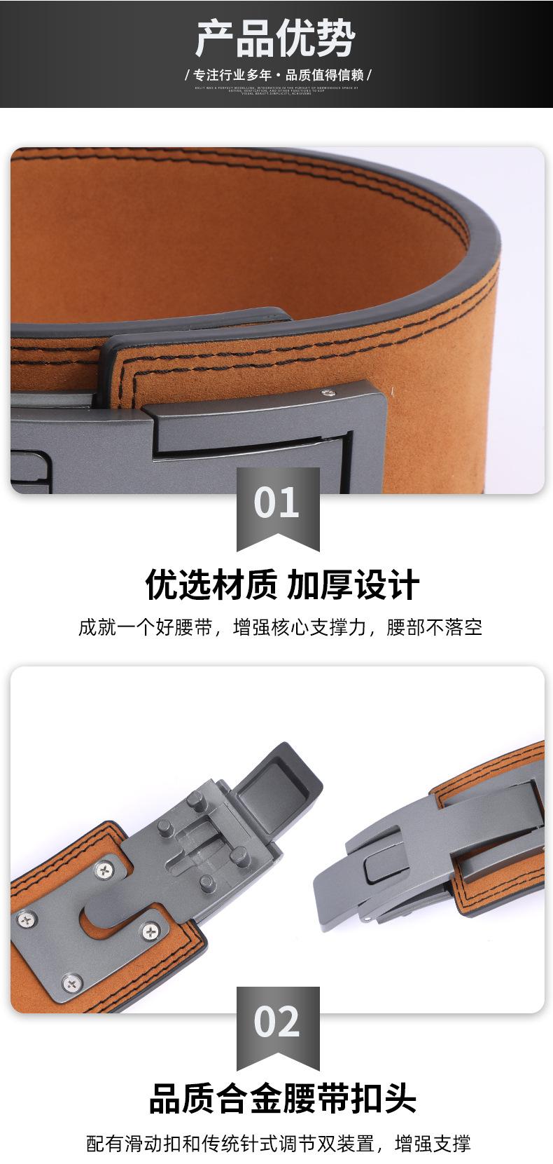 Cinturón de Fitness de Piel de Vaca Levantamiento de Pesas Peso Muerto Entrenamiento Deportes Hebilla de Palanca Automática Powerlifting Sentadilla Cinturón Deportivo