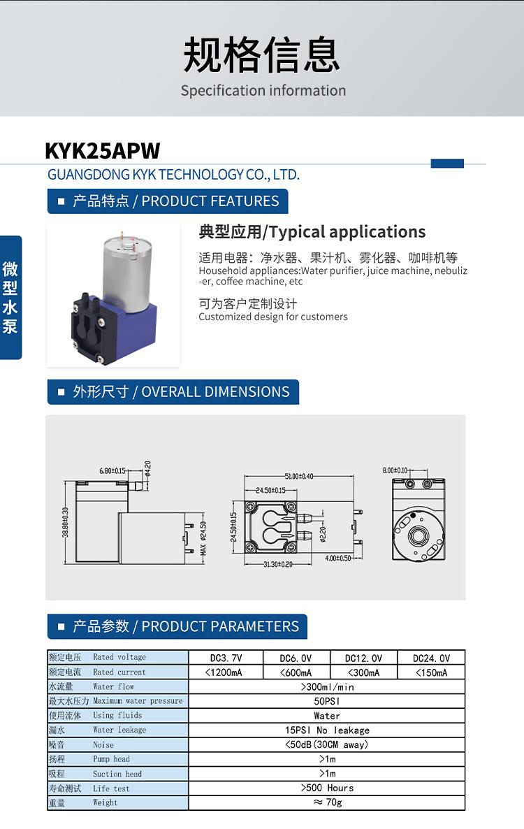 KYK25APW bomba de agua miniatura bomba de líquido grado alimenticio dispensador de leche bomba de agua miniatura dispensador de agua bomba autocebante bomba de aspersión