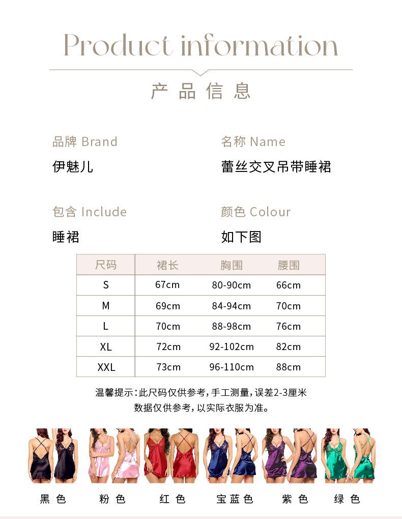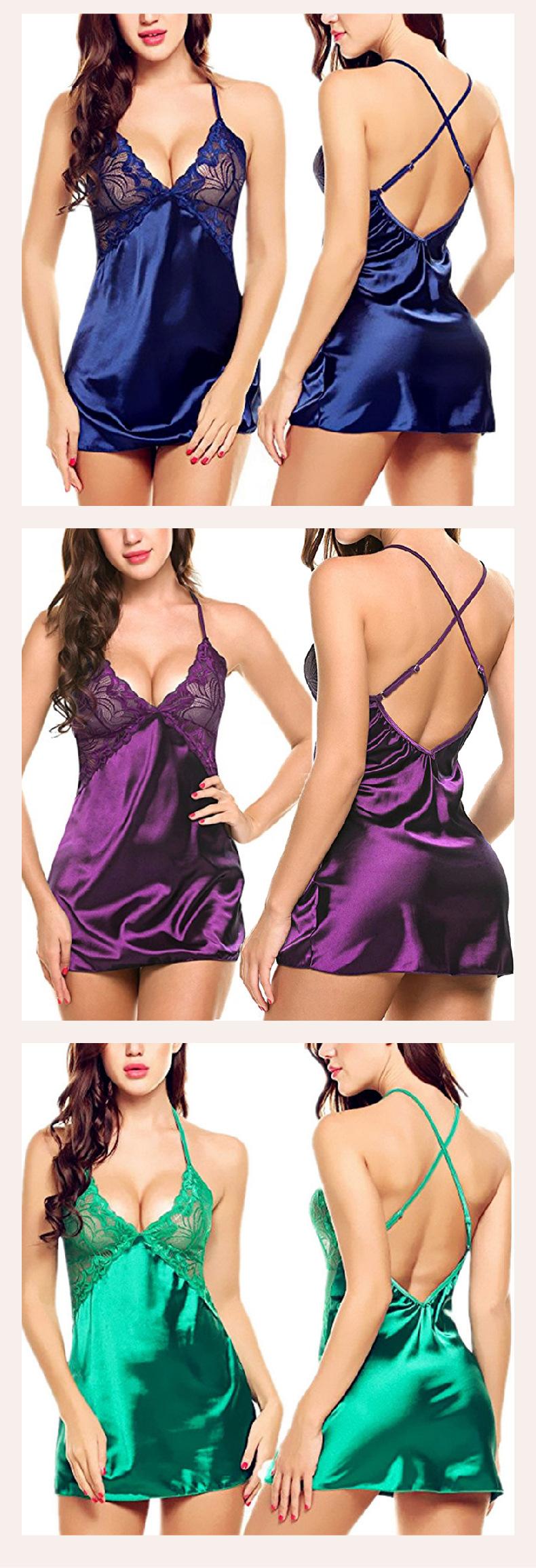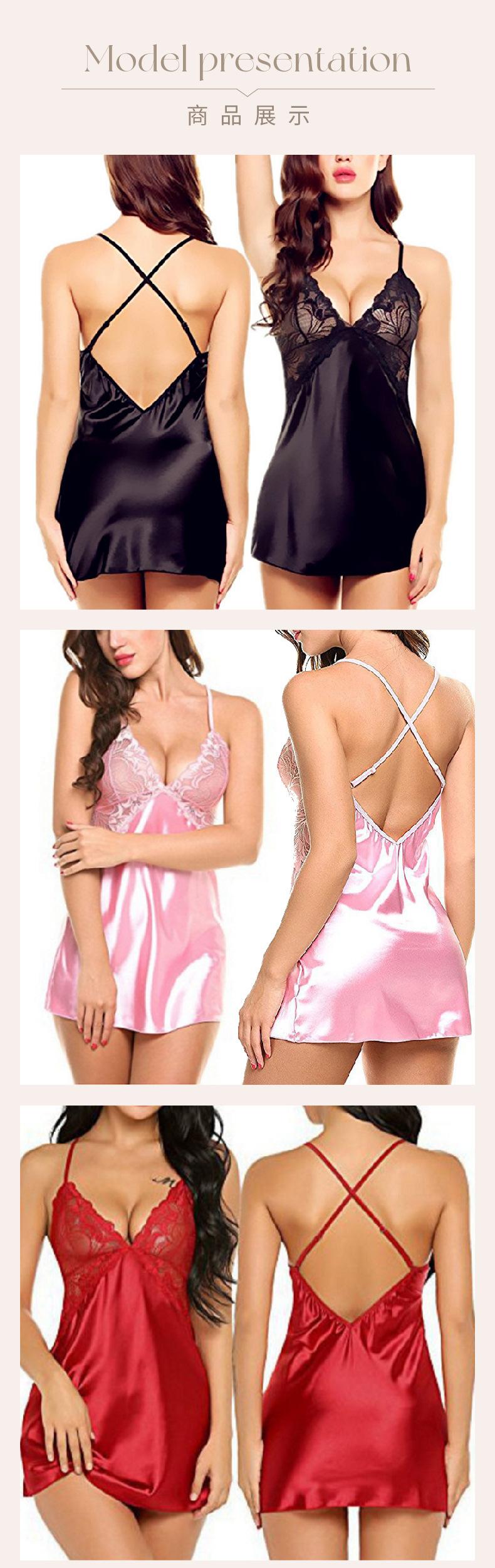 Nuevo de comercio exterior europeo y americano lencería sexy para damas encaje espalda cruzada tirantes camisón D5092