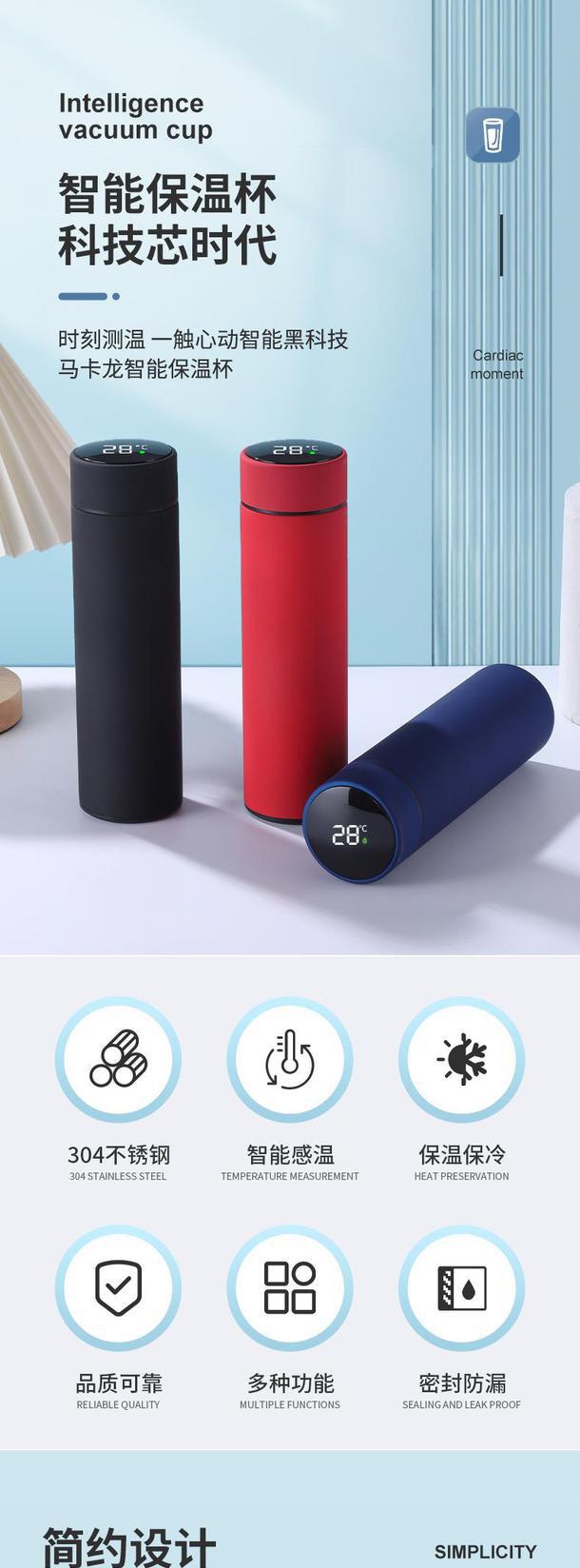 Taza termo de temperatura inteligente Taza de agua Taza de acero inoxidable 304 Taza medidora de temperatura de pintura de goma Regalo comercial Letras LOGO Taza recta