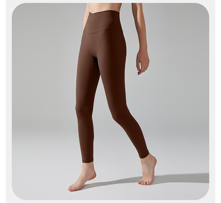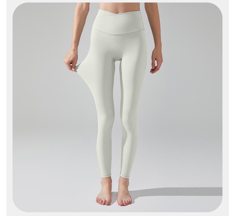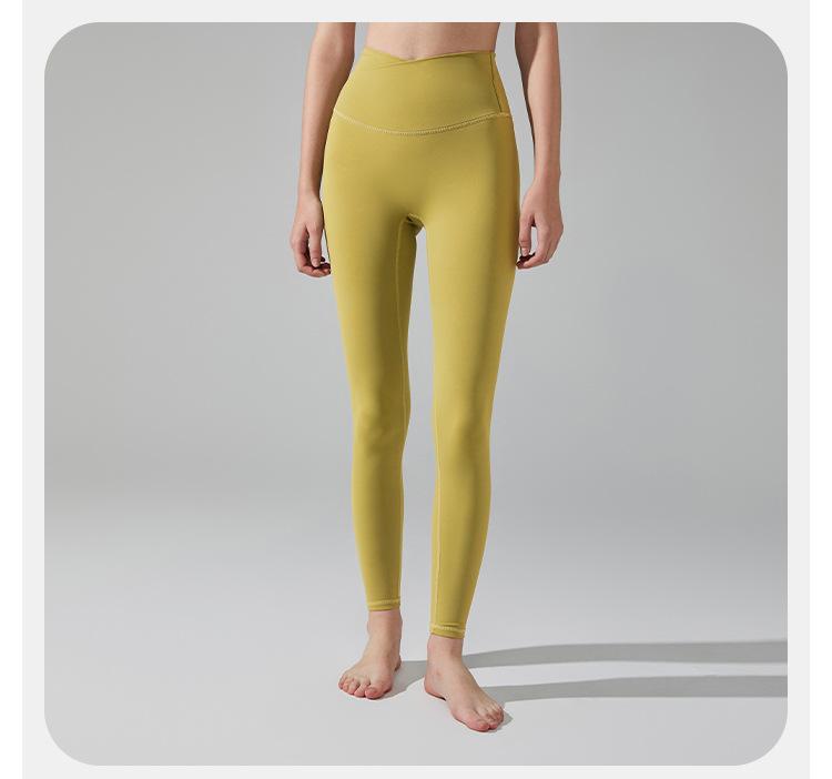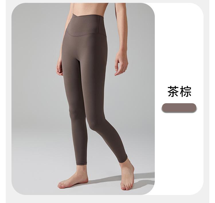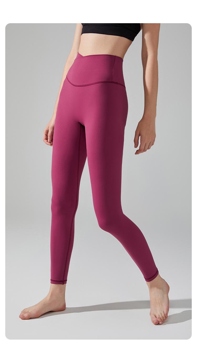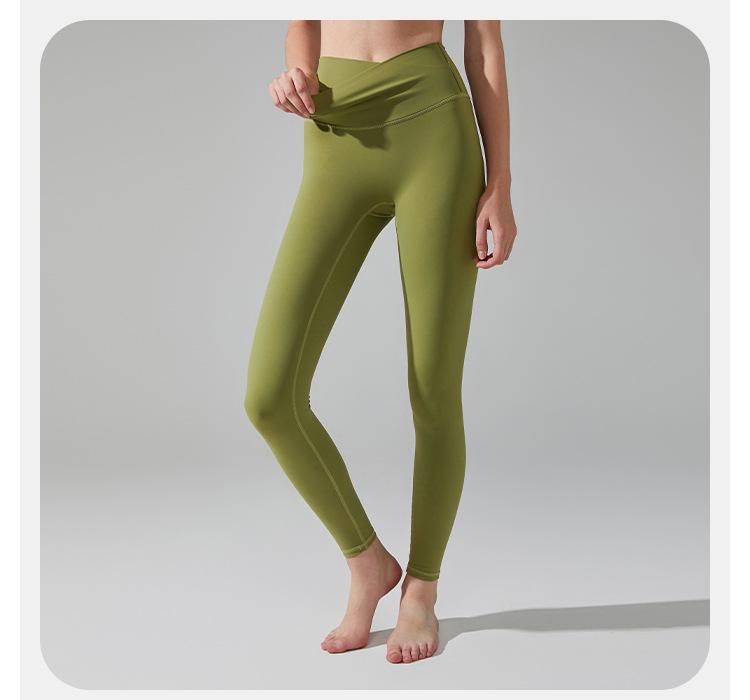 Lycra Ropa de Yoga para Mujer Pantalones Ajustados Sin Costuras para Fitness Cintura Alta Cruzada Control de Abdomen Deportes Levantamiento de Glúteos Pantalones de Yoga Desnudos Melocotón