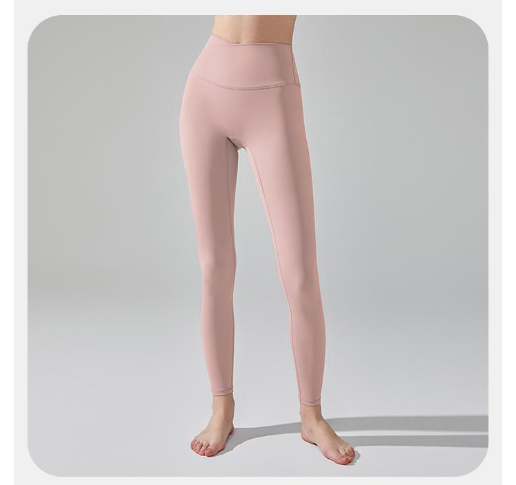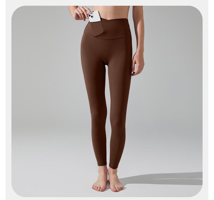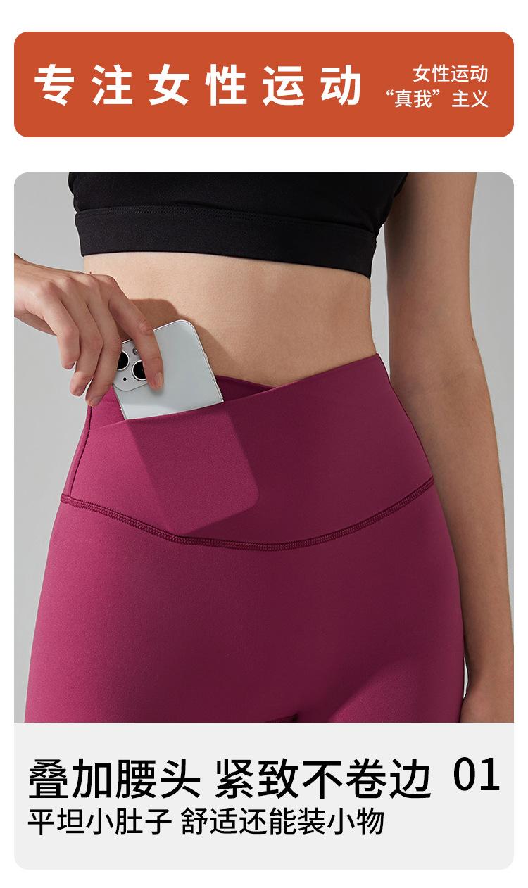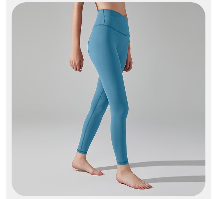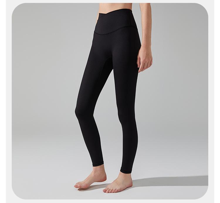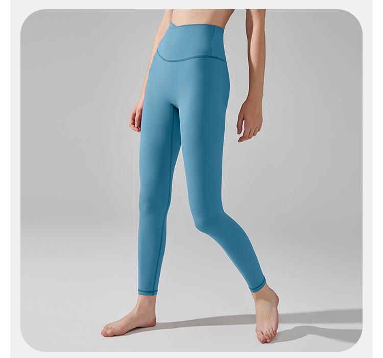Lycra Ropa de Yoga para Mujer Pantalones Ajustados Sin Costuras para Fitness Cintura Alta Cruzada Control de Abdomen Deportes Levantamiento de Glúteos Pantalones de Yoga Desnudos Melocotón