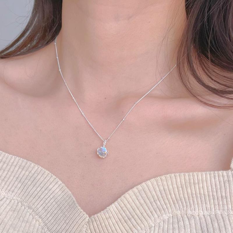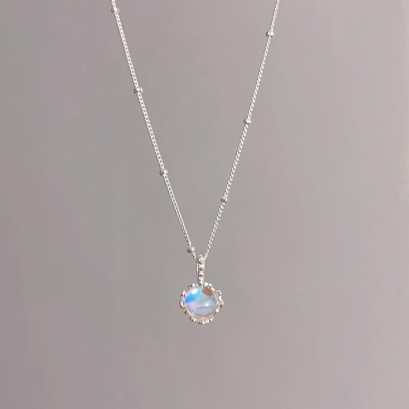 Collar de piedra lunar de nicho de estilo coreano para mujer, estilo frío, elegante, a la moda, con colgante redondo de alta calidad que combina con todo, cadena de clavícula a la moda.