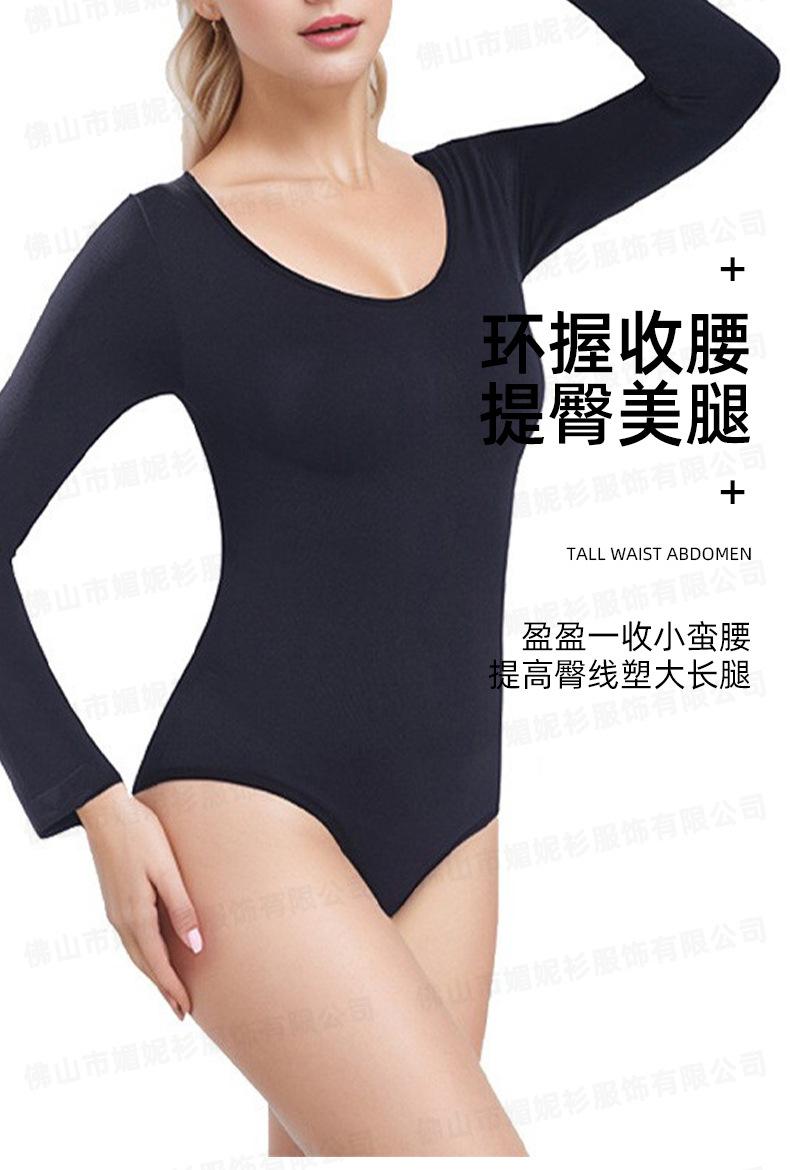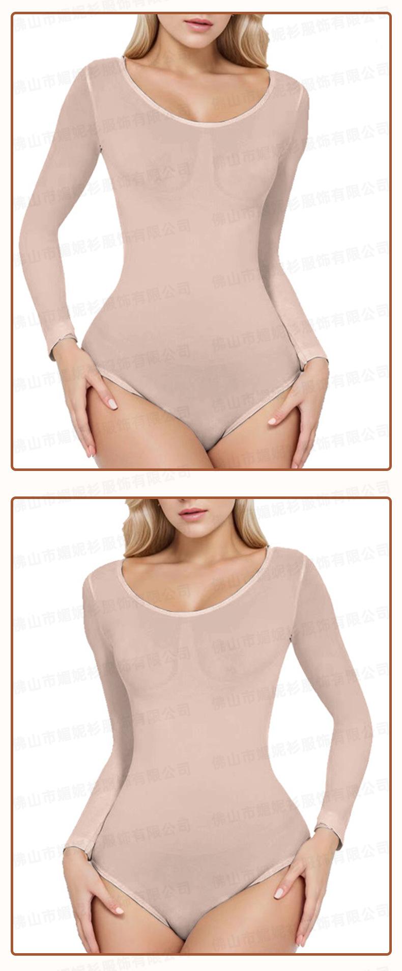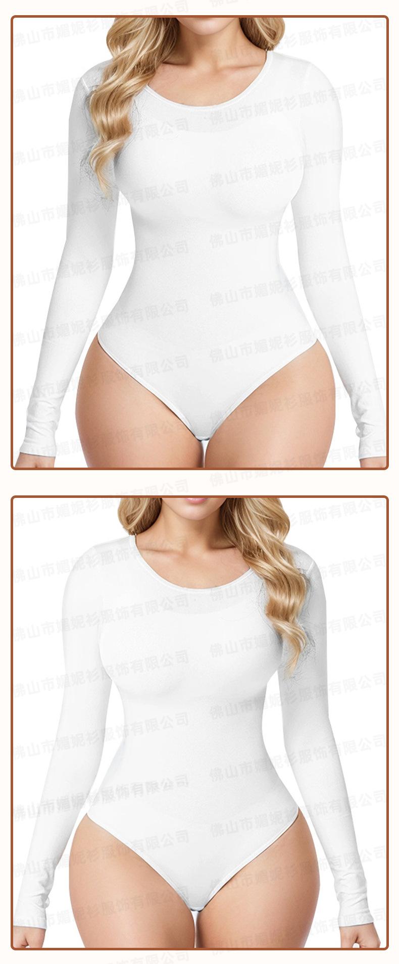 Mameluco de Color Sólido Transfronterizo para Mujer Base de Vientre Talla Grande Cadera Manga Larga Sin Costuras Moldeador de Cuerpo bodyshap