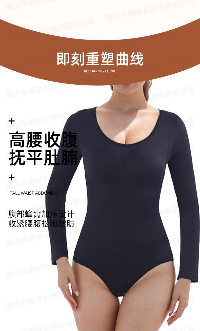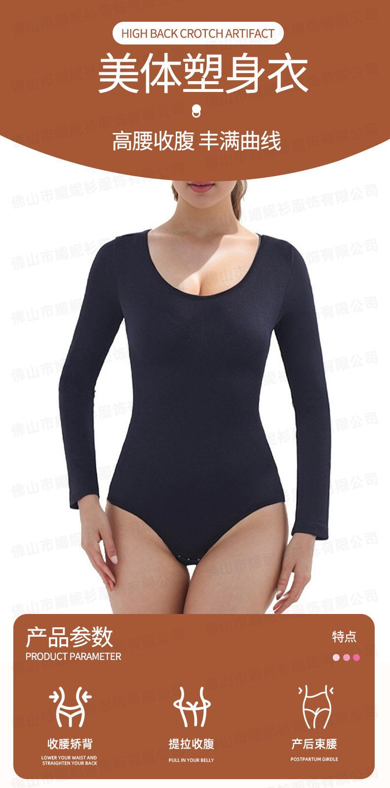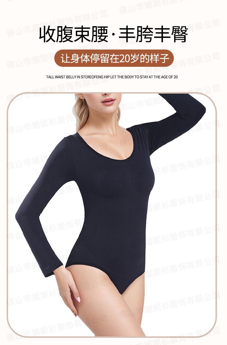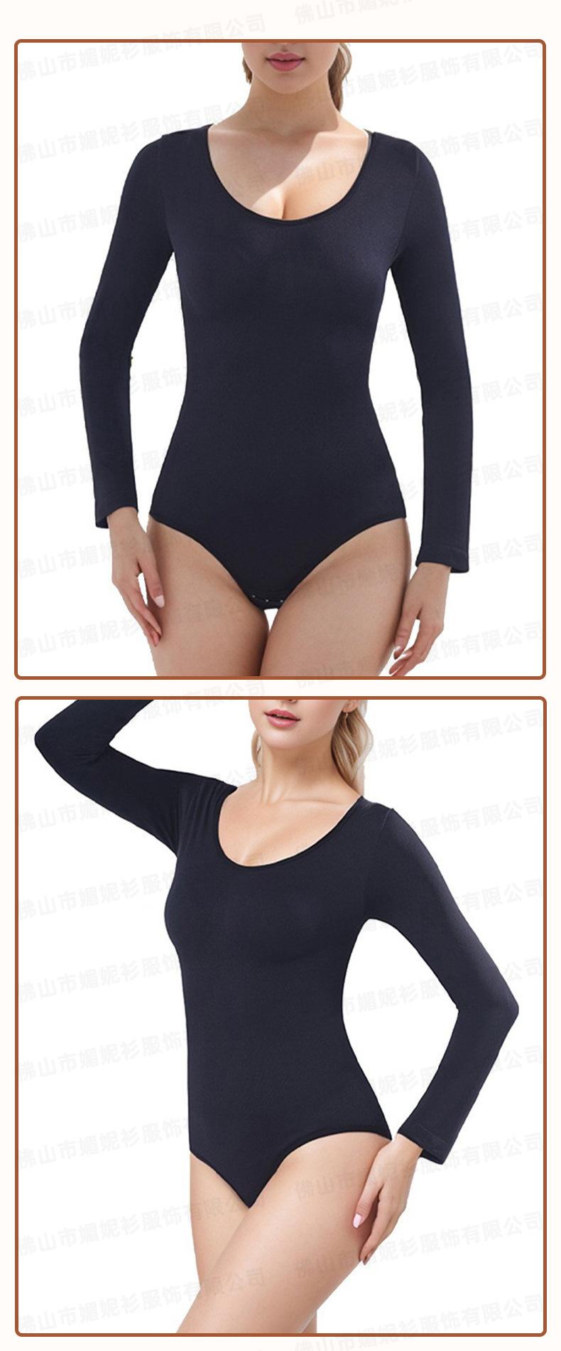 Mameluco de Color Sólido Transfronterizo para Mujer Base de Vientre Talla Grande Cadera Manga Larga Sin Costuras Moldeador de Cuerpo bodyshap
