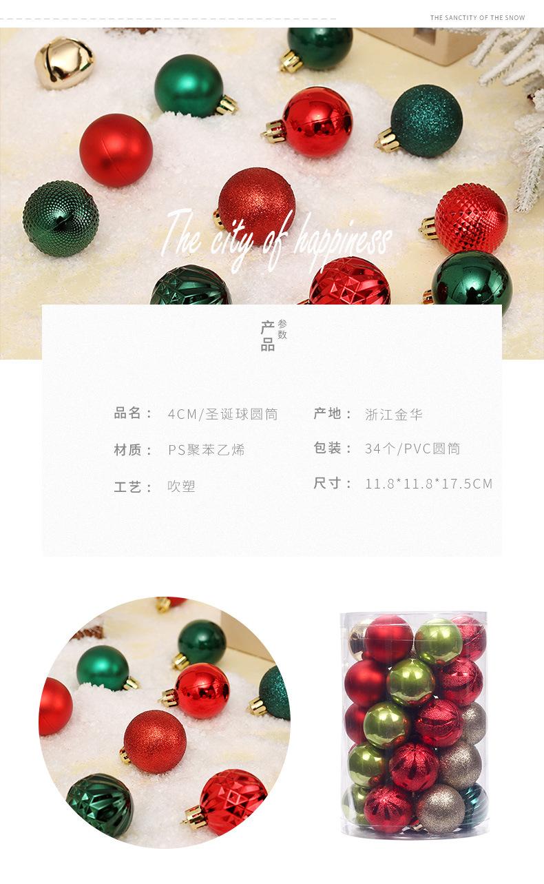 Nuevas decoraciones navideñas transfronterizas, juego de bolas navideñas de forma especial de tubo de 4 cm/34 piezas, colgante para árbol de Navidad