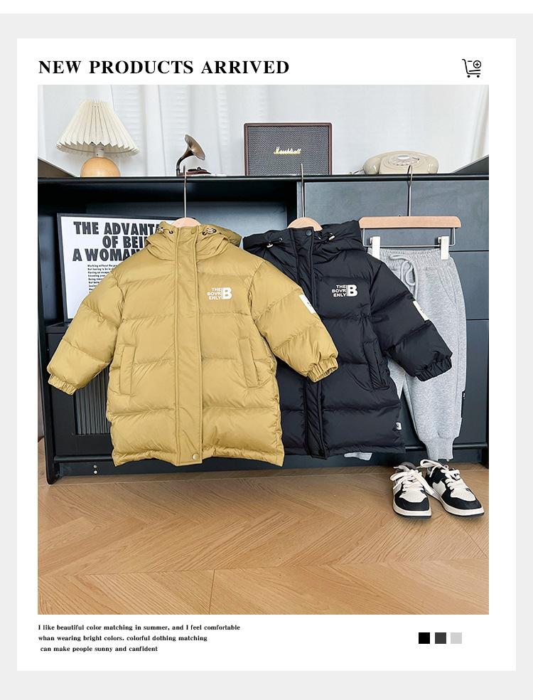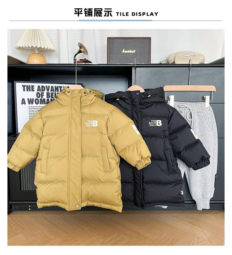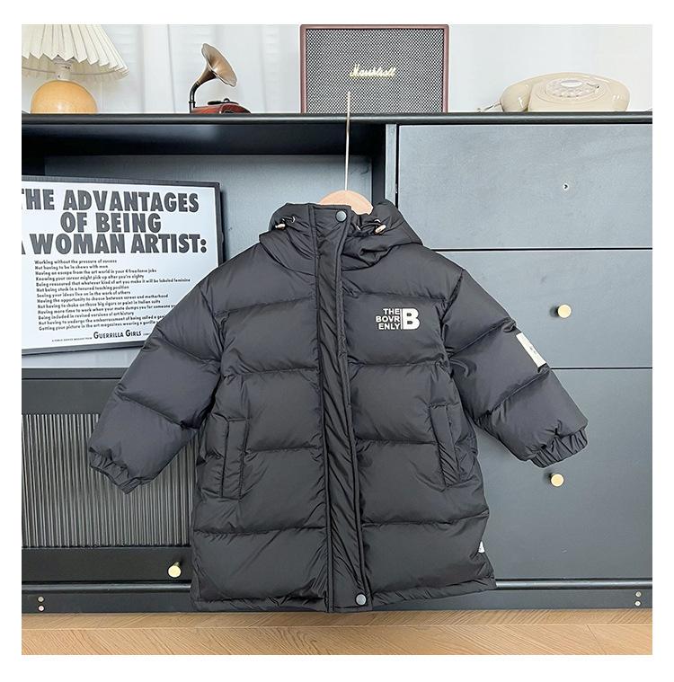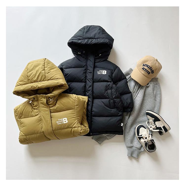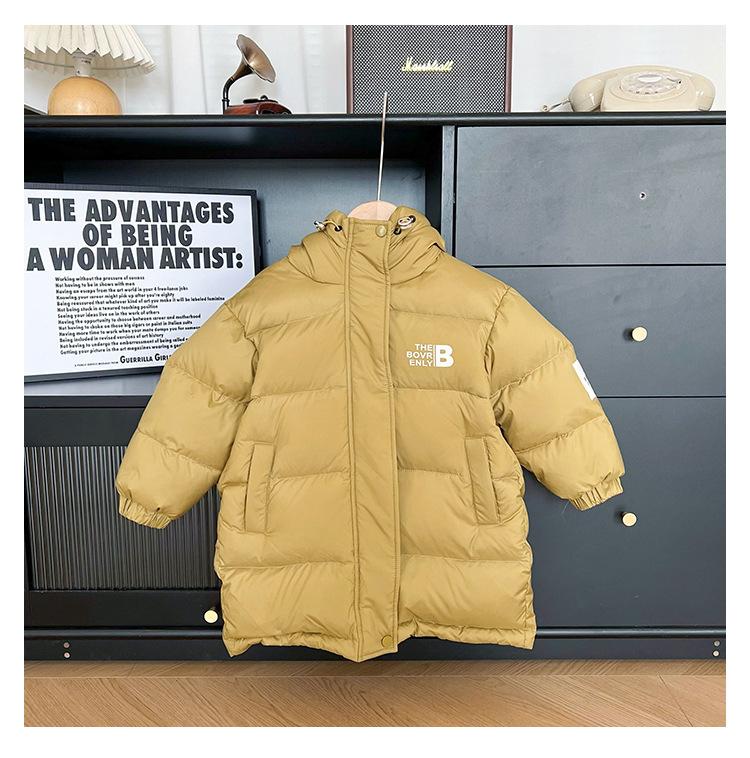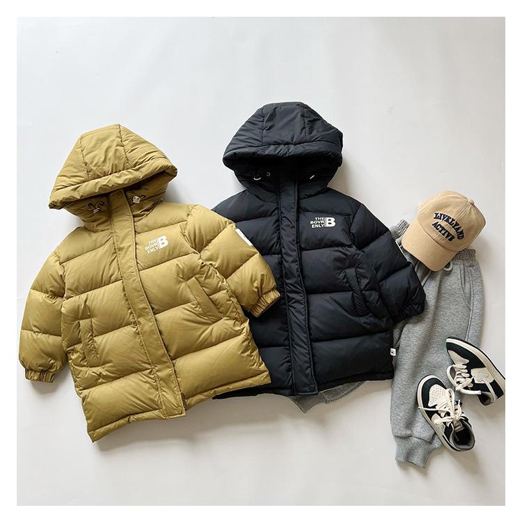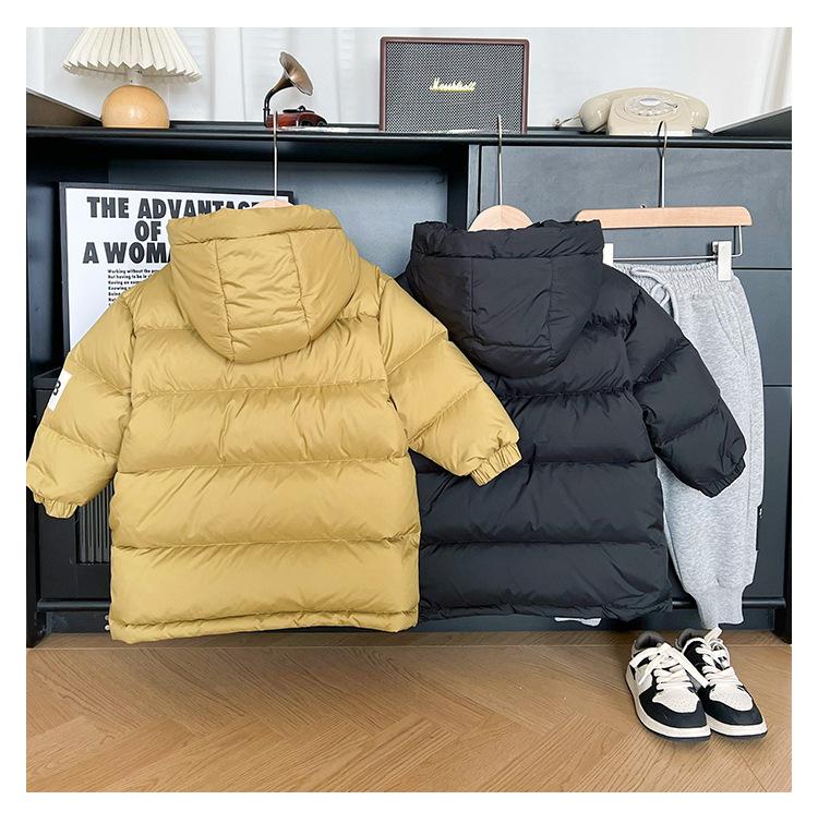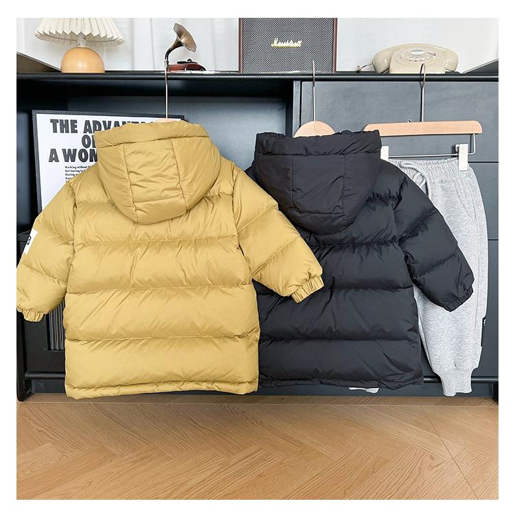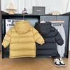 Xianao 2023 Invierno nuevo para niños estilo coreano longitud media con capucha chamarra de plumón niños y niñas todo combina letra holgada