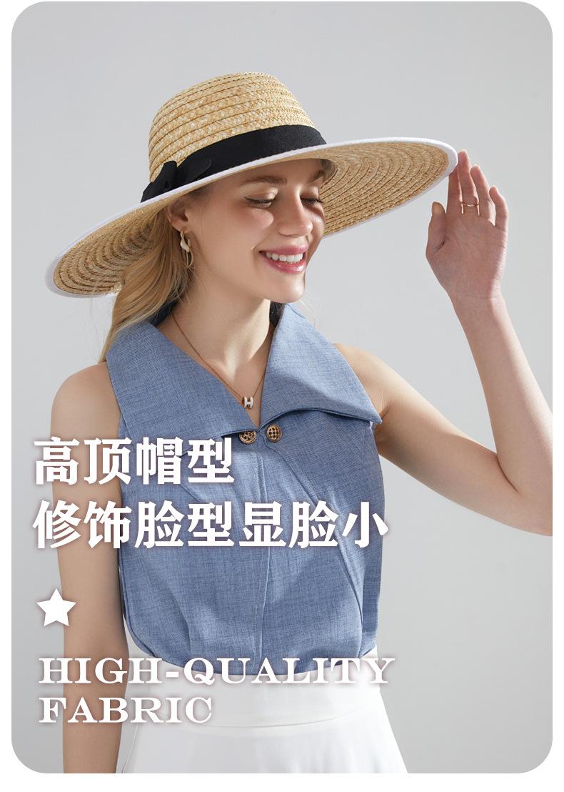 Sombrero Transfronterizo Europeo y Americano Personalizado, Sombrero de Paja Popular, Sombrero de Paja de Ala Ancha de Alta Calidad para Mujer, Vacaciones de Verano, Sombrilla de Playa
