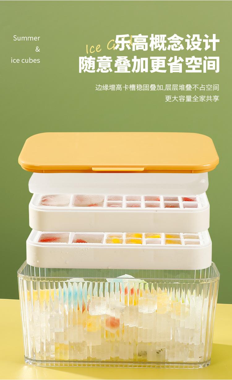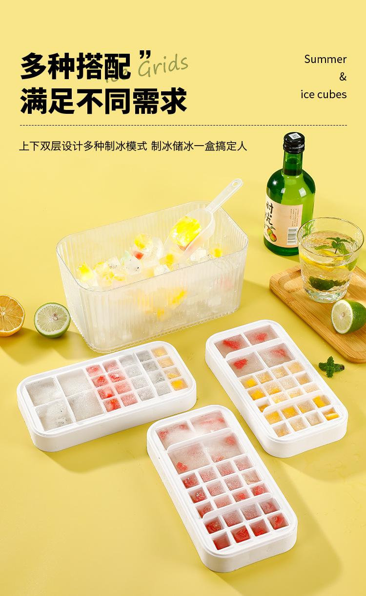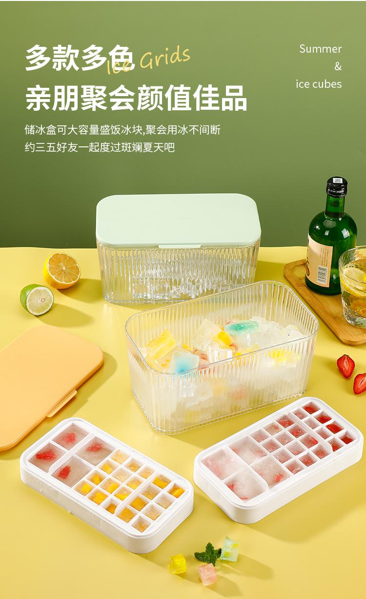 Nuevo molde de silicona para cubitos de hielo, caja de hielo grande con tapa, caja de almacenamiento de hielo, artefacto para cubitos de hielo congelados