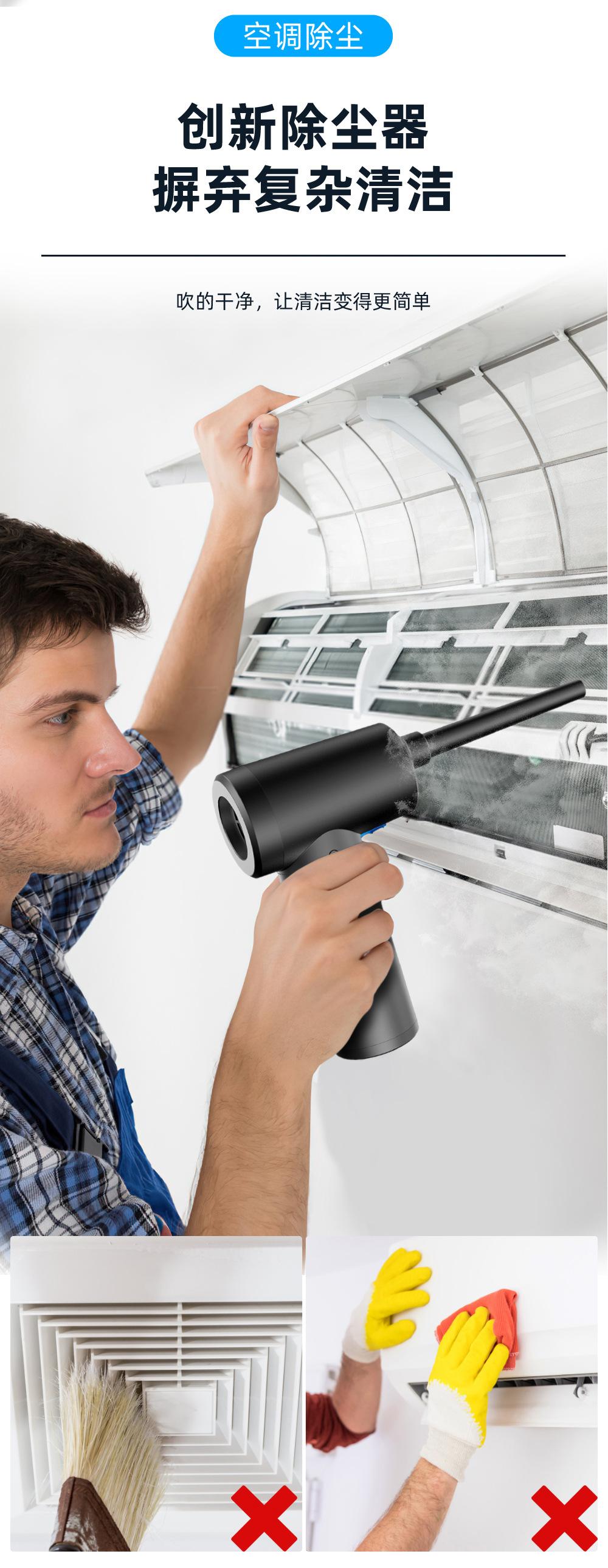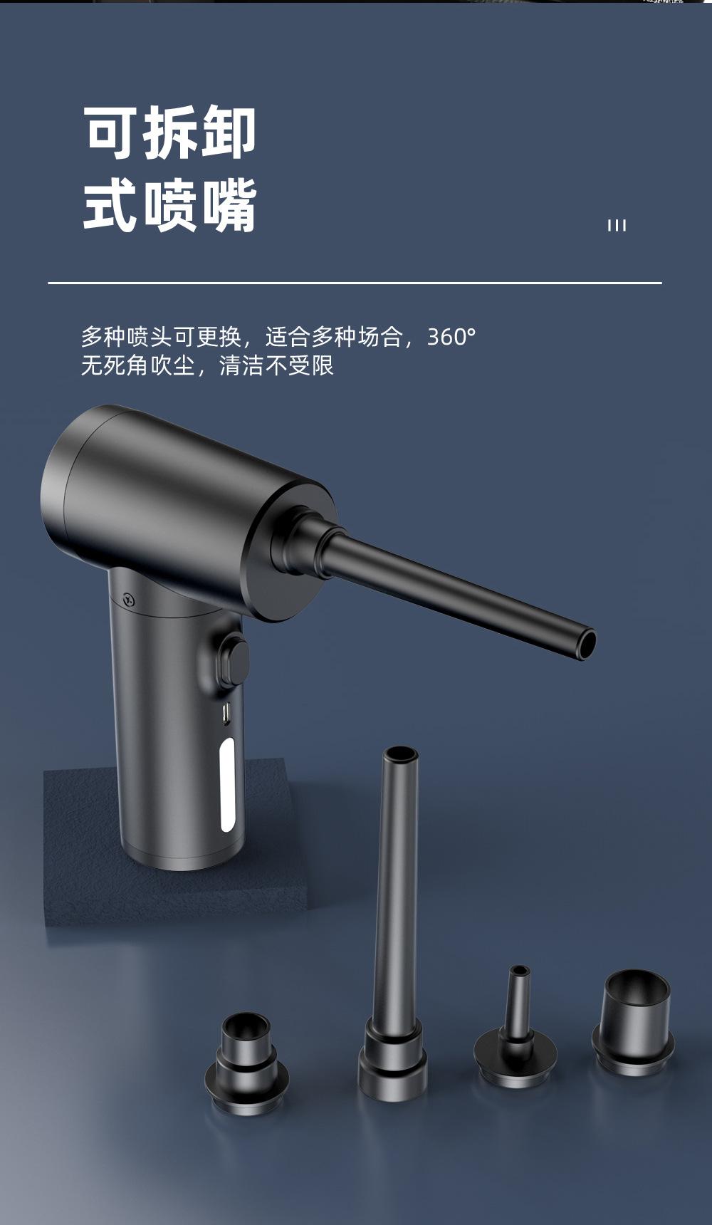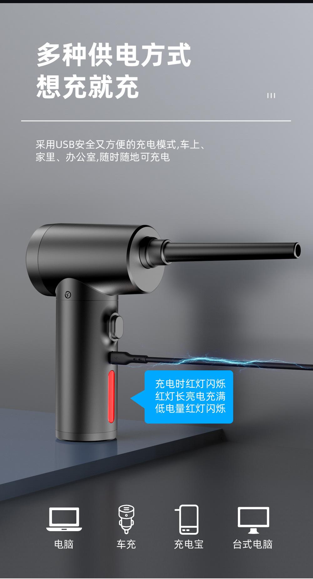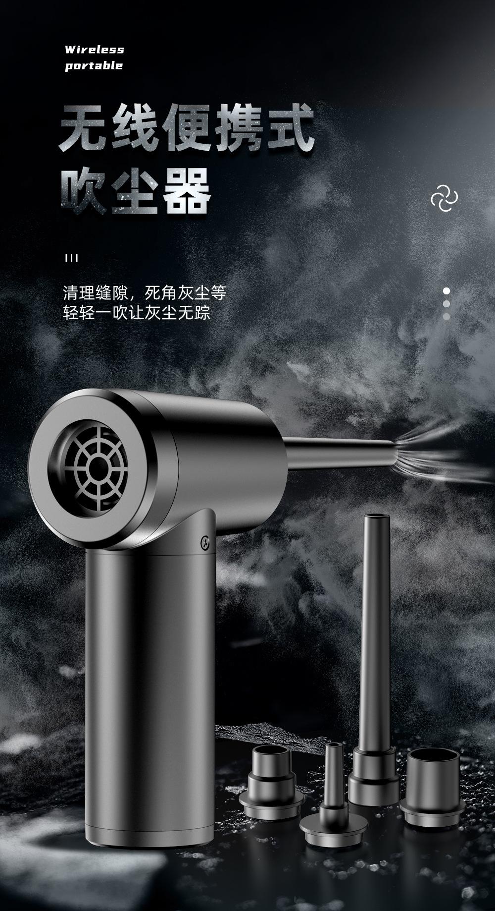 El soplador de polvo inalámbrico de doble propósito para coche y hogar 2022 es de tamaño compacto, ligero y tiene una apariencia novedosa. Utiliza un motor de escobillas de carbón de alta velocidad de 12 V y una batería de 6000 mAh para una mayor duración de la batería y potencia total.