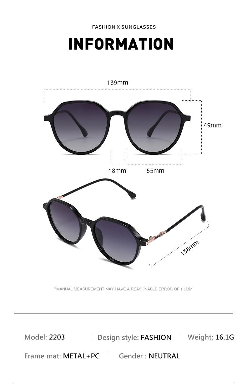 Gafas de sol redondas retro para mujer, montura grande, elegantes, polarizadas, para conducir al aire libre, 2203