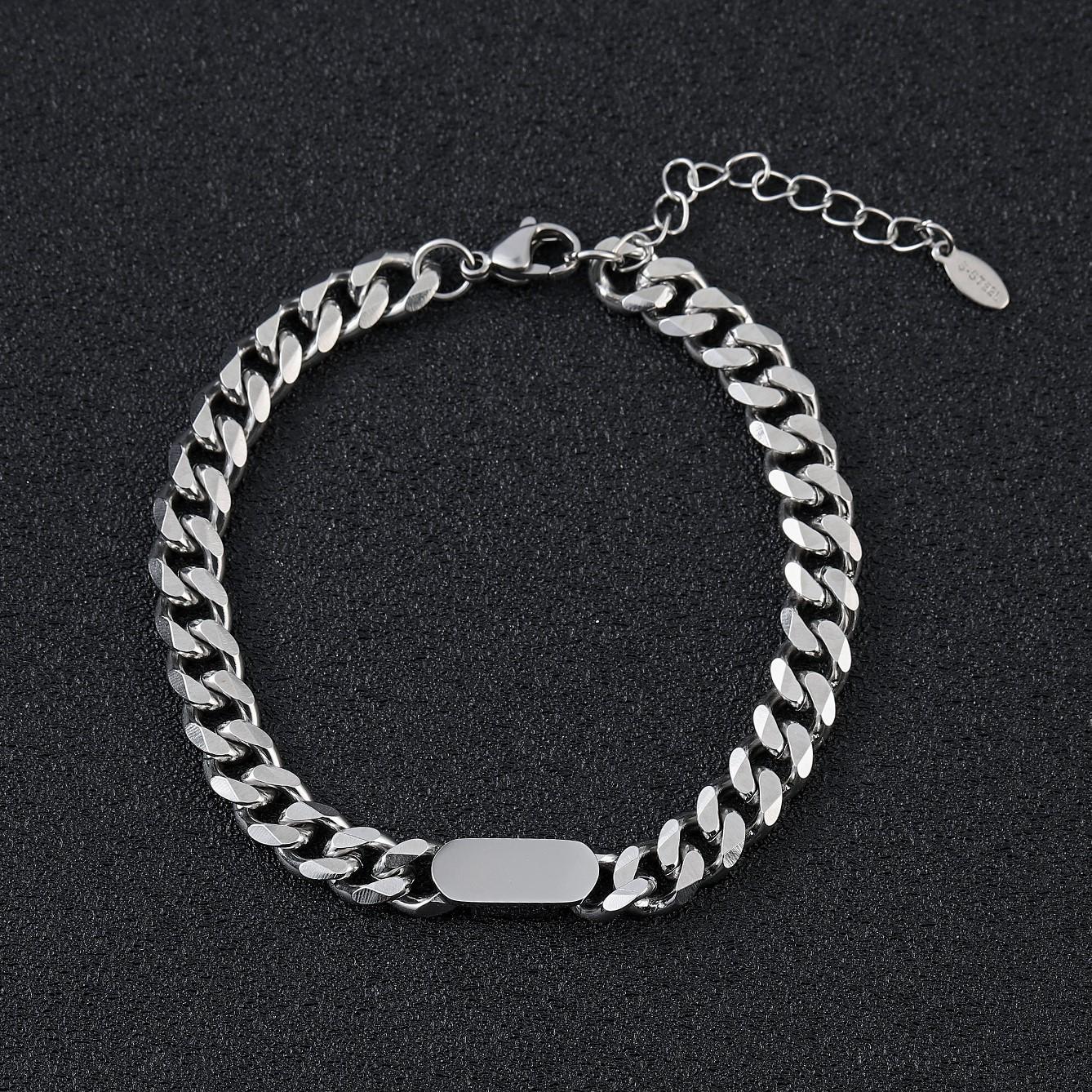 Pulsera para Hombre Moda Simple Placa Ligera Marcable Acero Inoxidable Pareja Pulsera Acero Titanio Suministro Directo de Fábrica