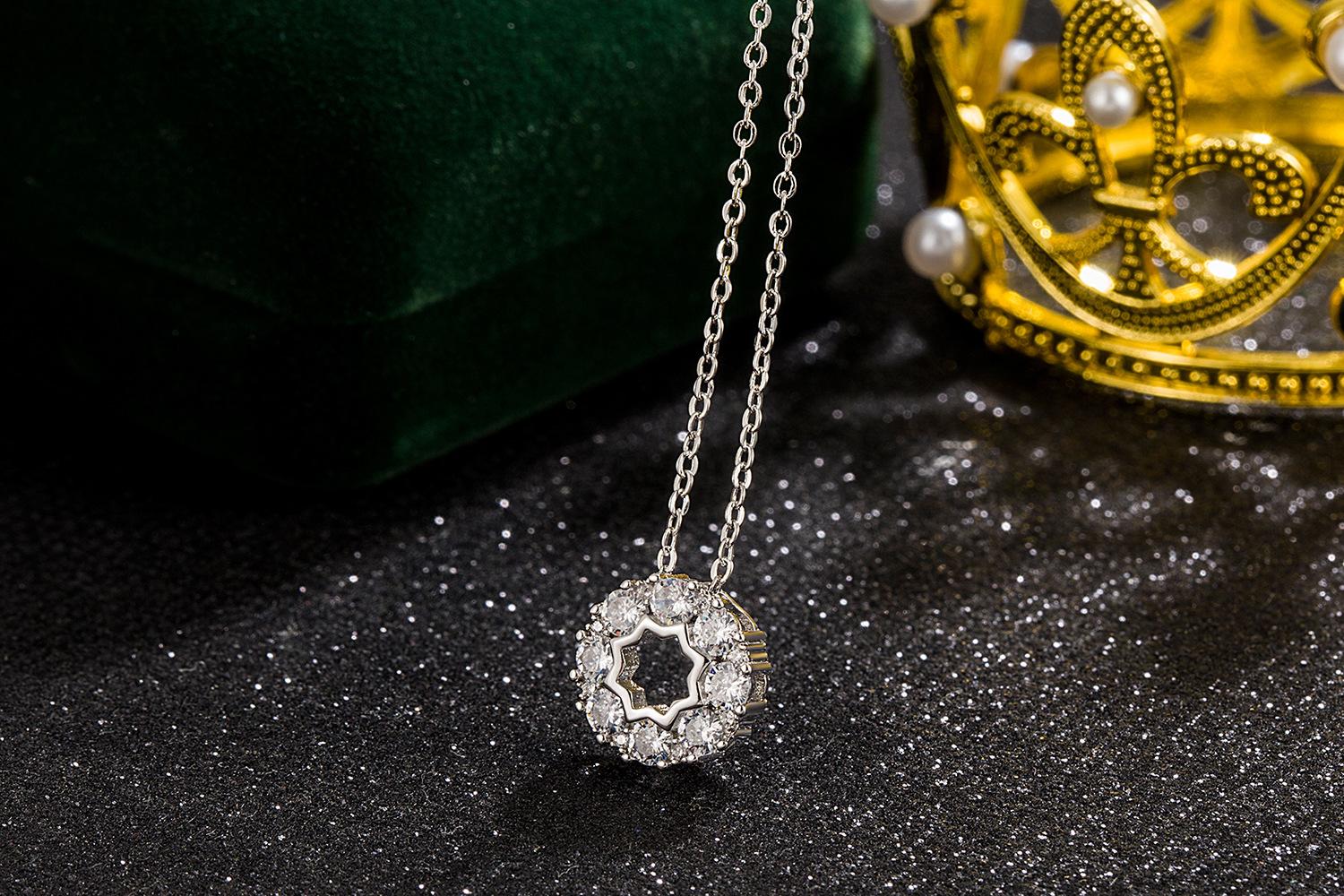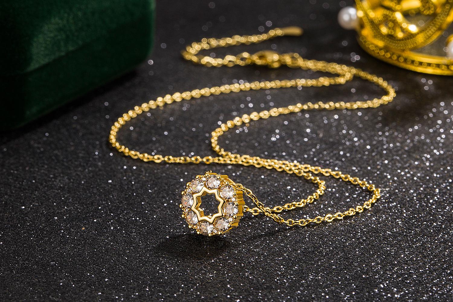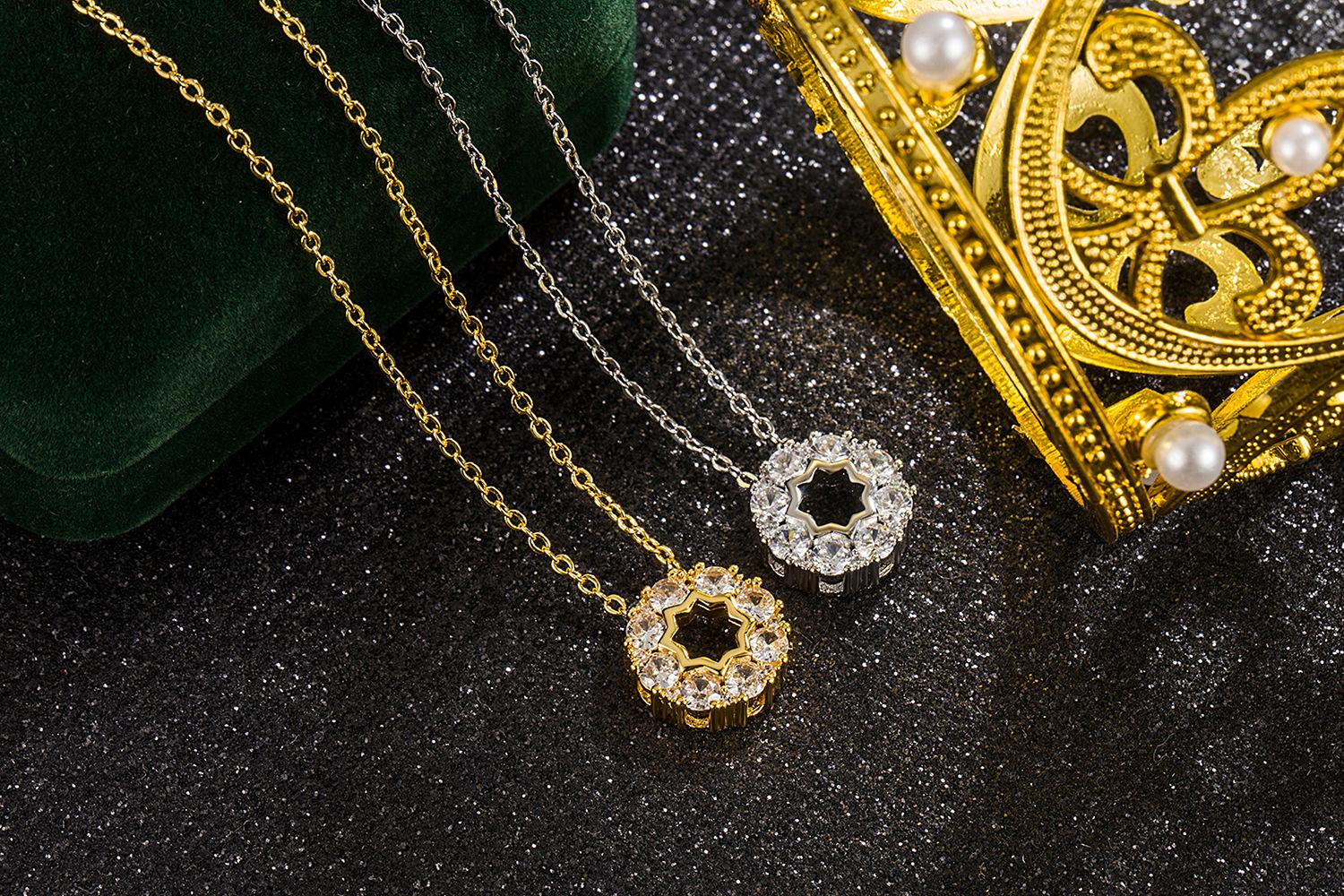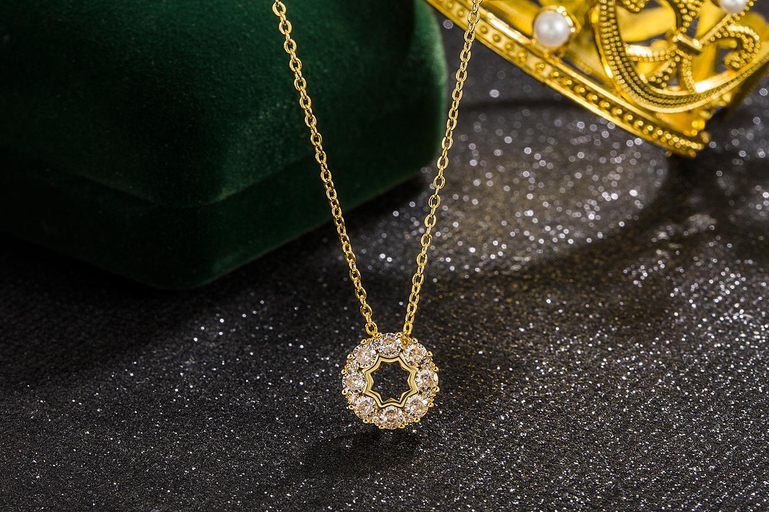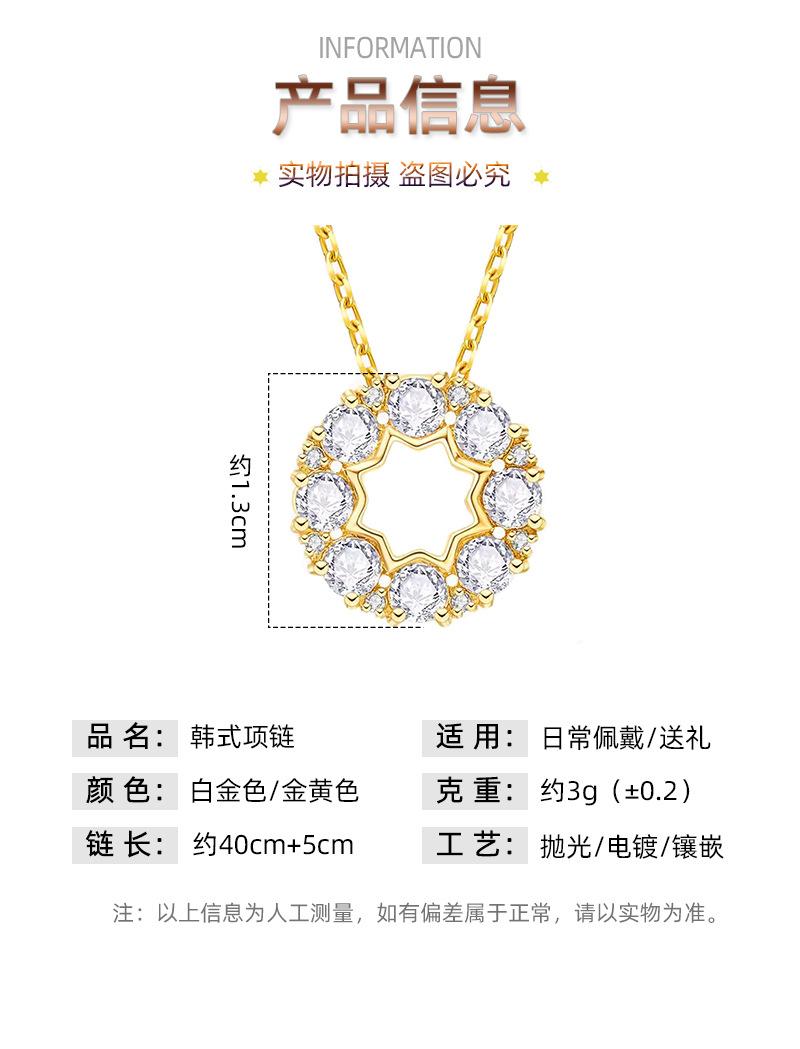 Collar con colgante de estrella de mango transfronterizo europeo y americano con microincrustaciones, redondo, sencillo, exquisito, ligero, de lujo, cadena de clavícula alta para novia
