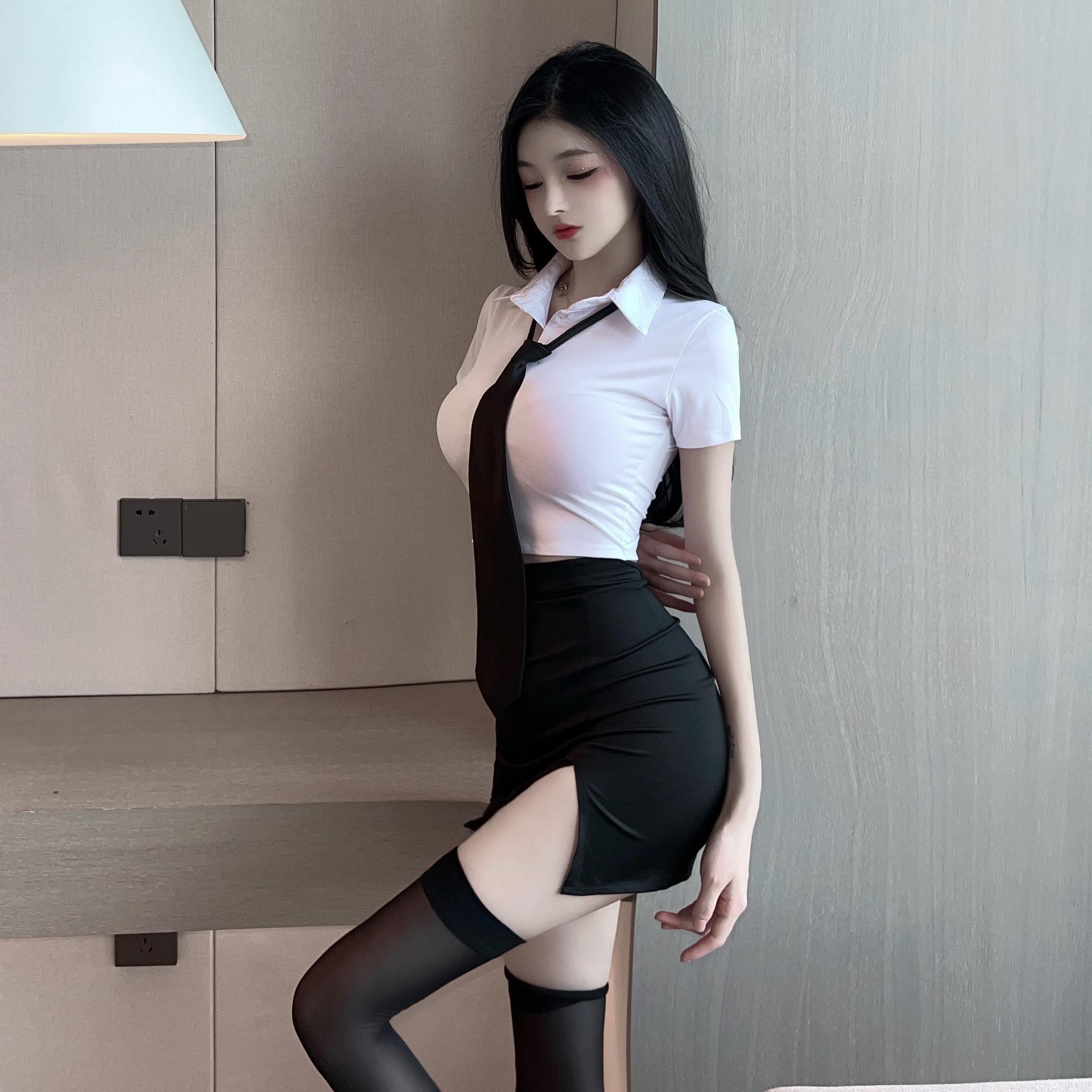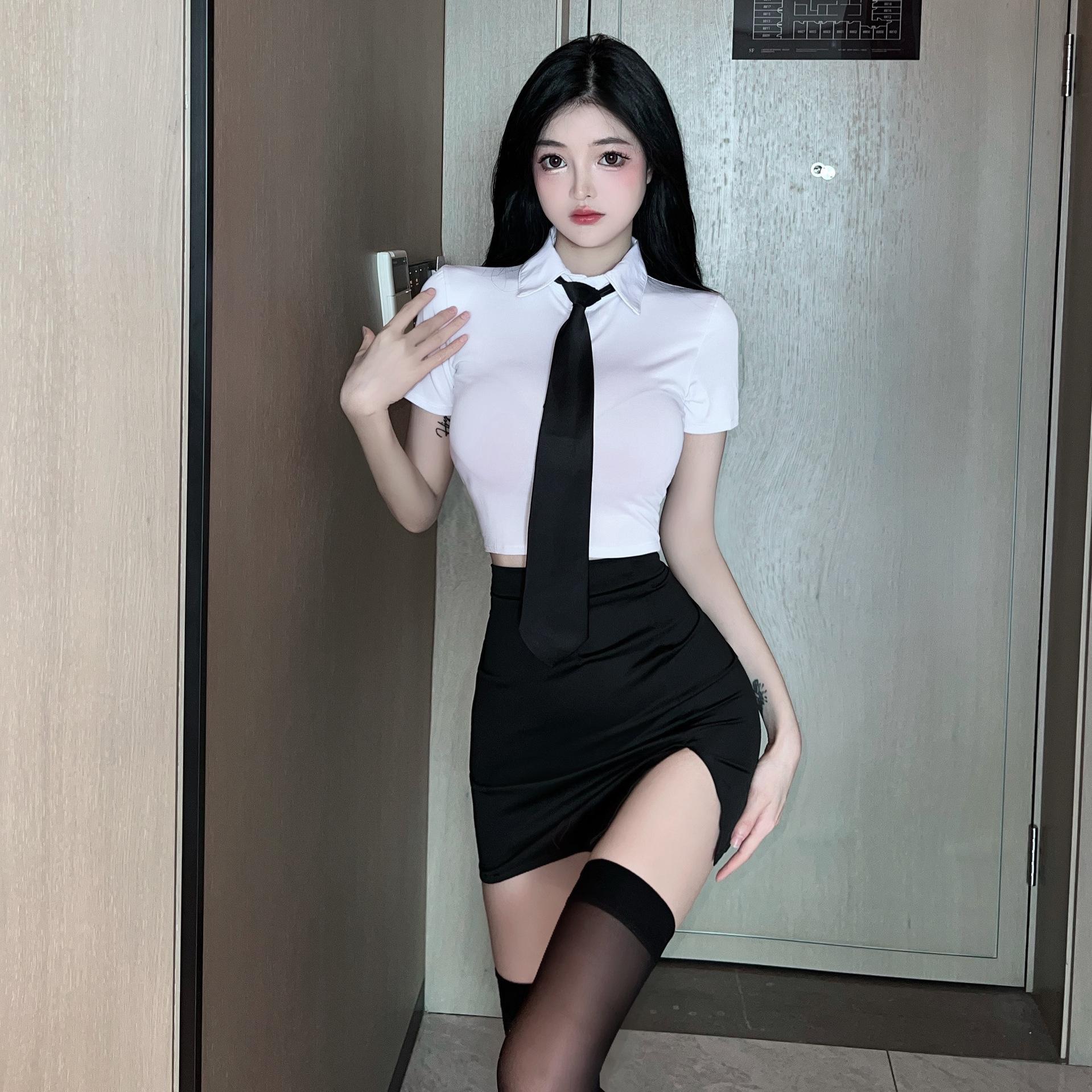 Amor como ropa interior sexy apretada pecho pequeño cuello blanco uniforme cadera secretaria tentación juego de rol traje de negocios 5268