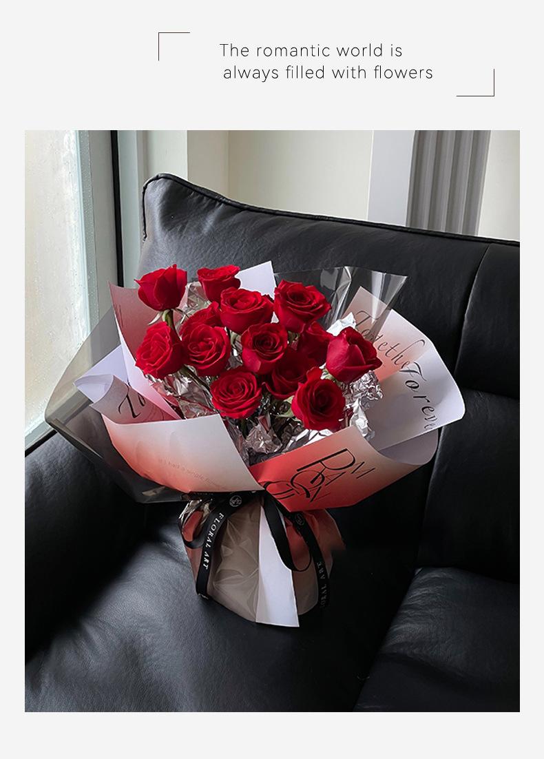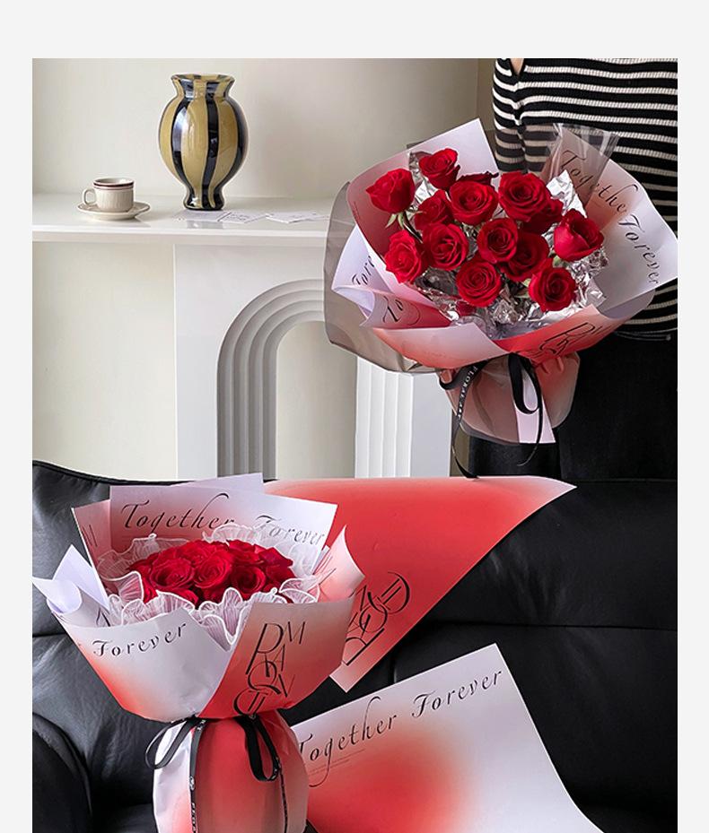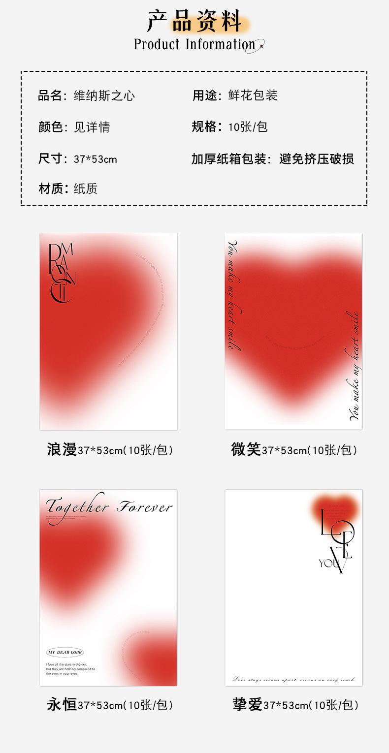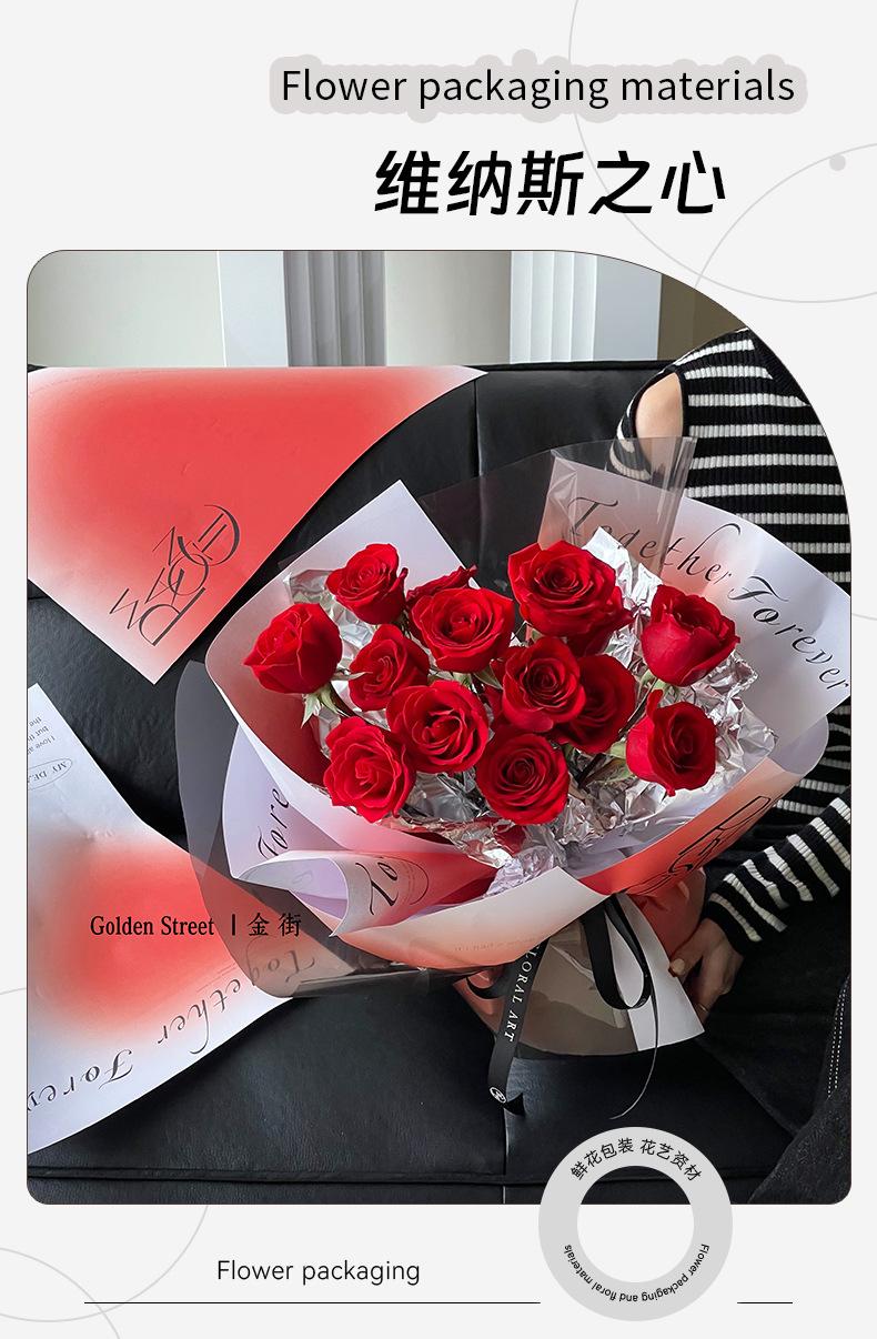 Papel de regalo semi-impermeable para ramo de flores inglés Tanabata, diseño de corazón de Venus de San Valentín con sombra de flores