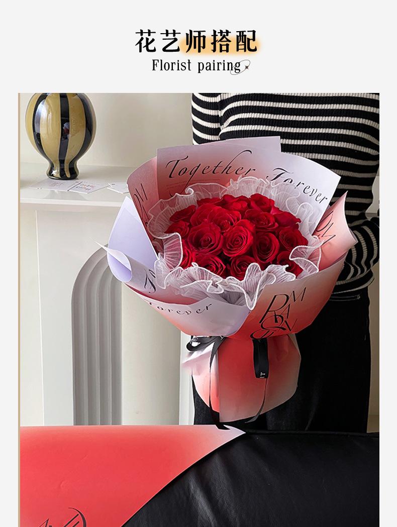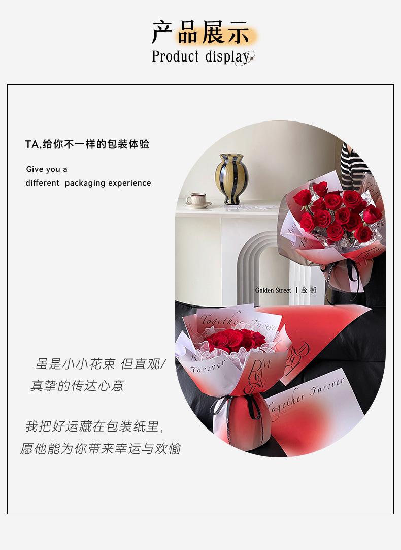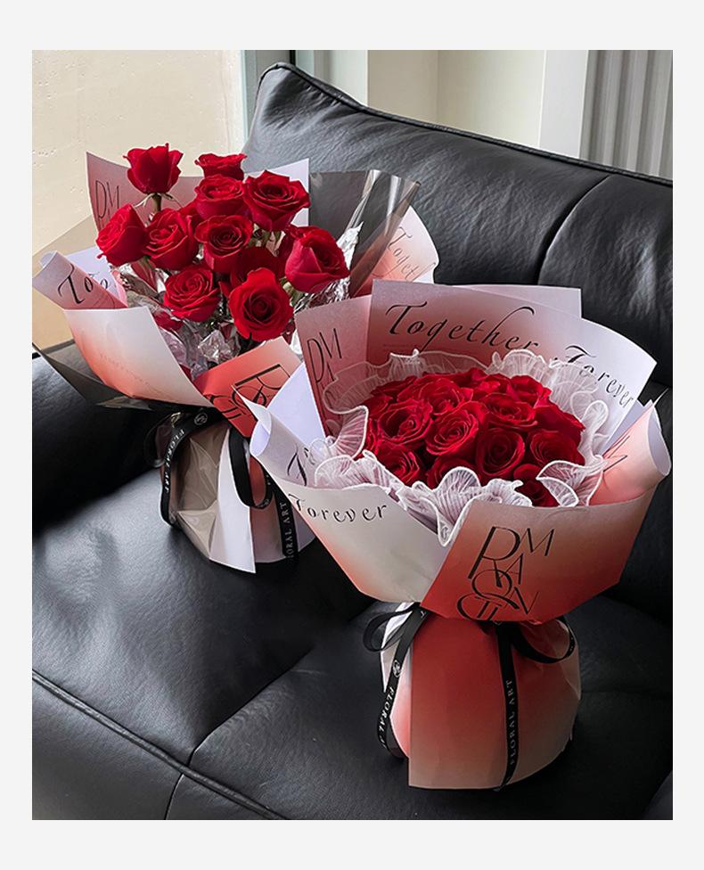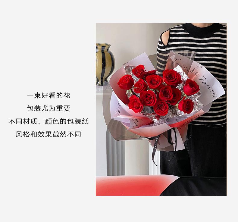 Papel de regalo semi-impermeable para ramo de flores inglés Tanabata, diseño de corazón de Venus de San Valentín con sombra de flores