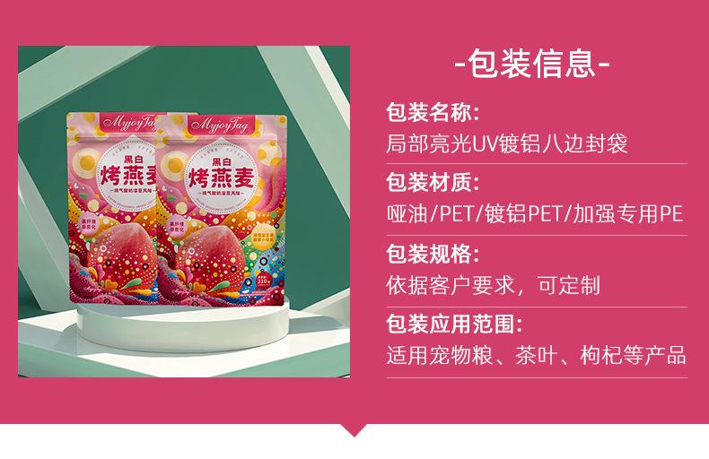 Bolsa de plástico para alimentos impresión a color personalizada sello de ocho bordes bolsa de embalaje para avena snack de aluminio bolsa autosoportada autosellable personalizada