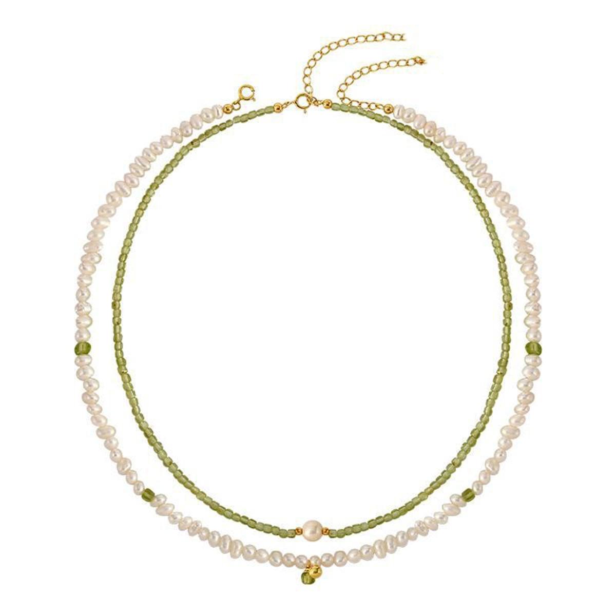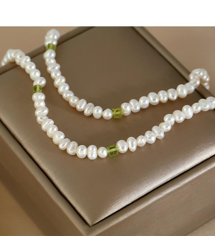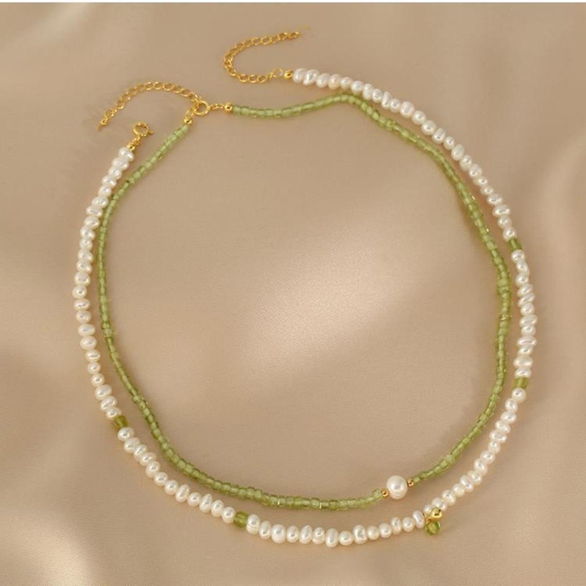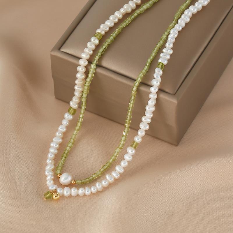 Collar de Perlas de Olivino Natural de Agua Dulce para Mujer Cadena Doble de Clavícula Superpuesta de Perlas de Piedra Natural Cadena de Cuello Nicho de Lujo Ligero