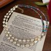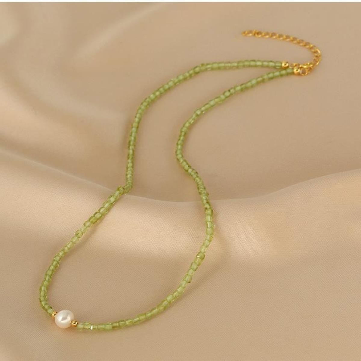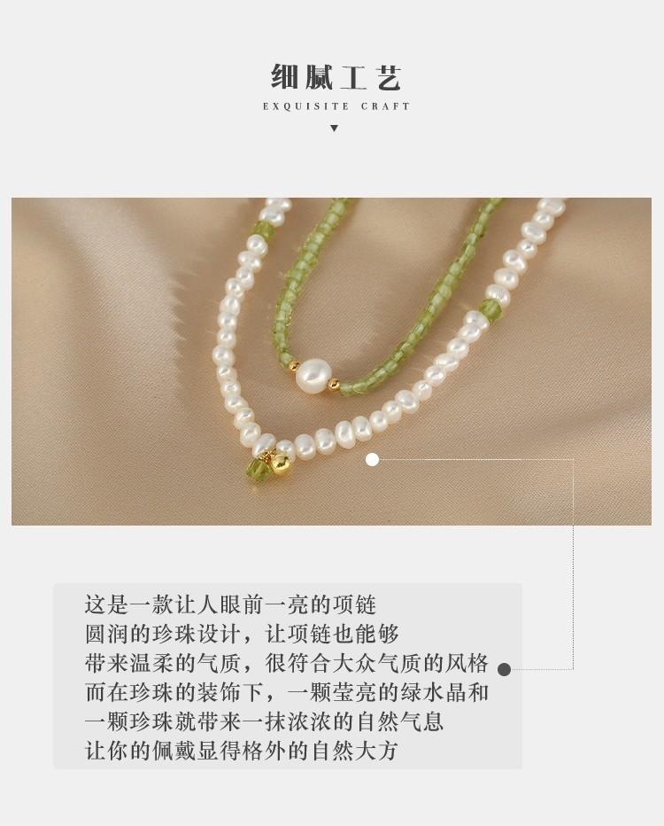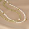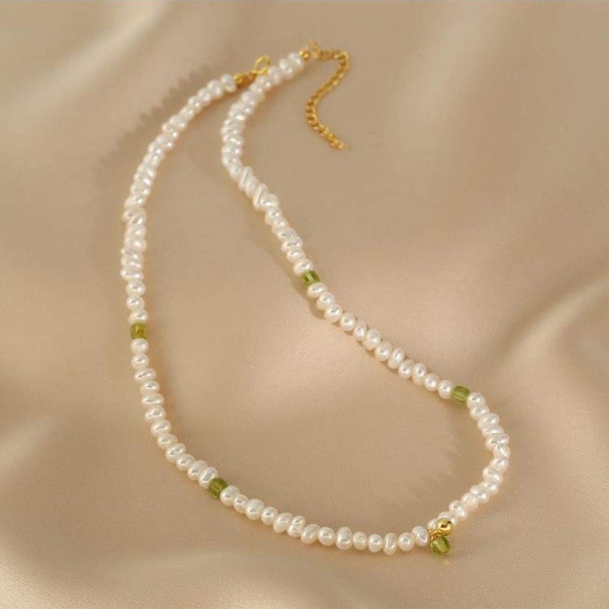 Collar de Perlas de Olivino Natural de Agua Dulce para Mujer Cadena Doble de Clavícula Superpuesta de Perlas de Piedra Natural Cadena de Cuello Nicho de Lujo Ligero