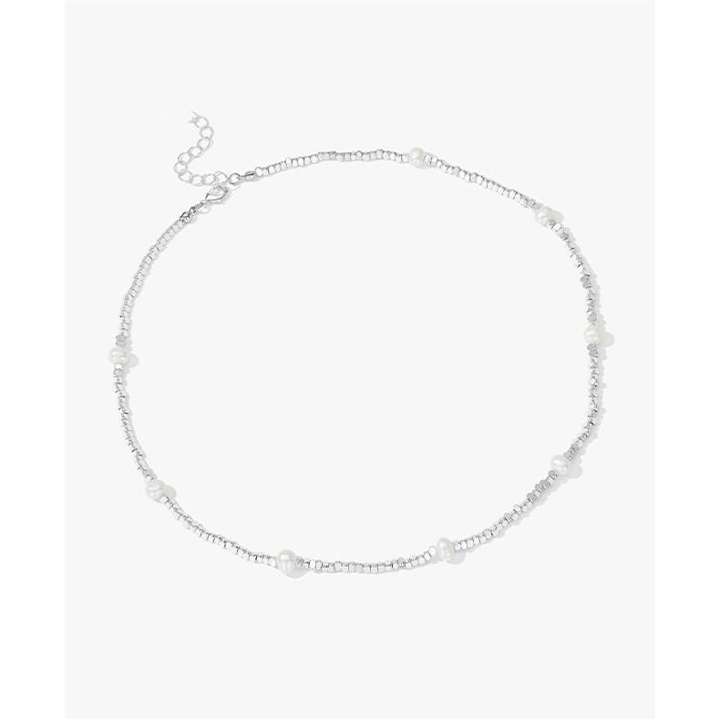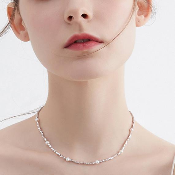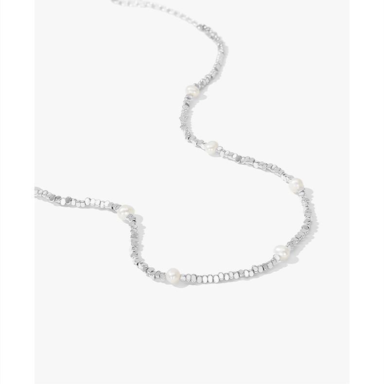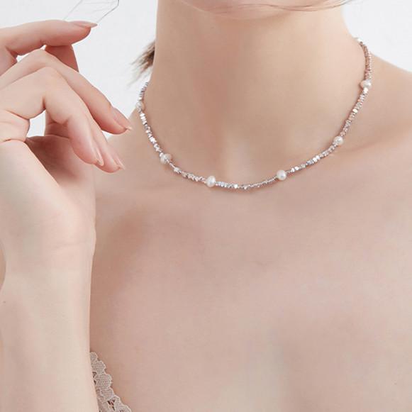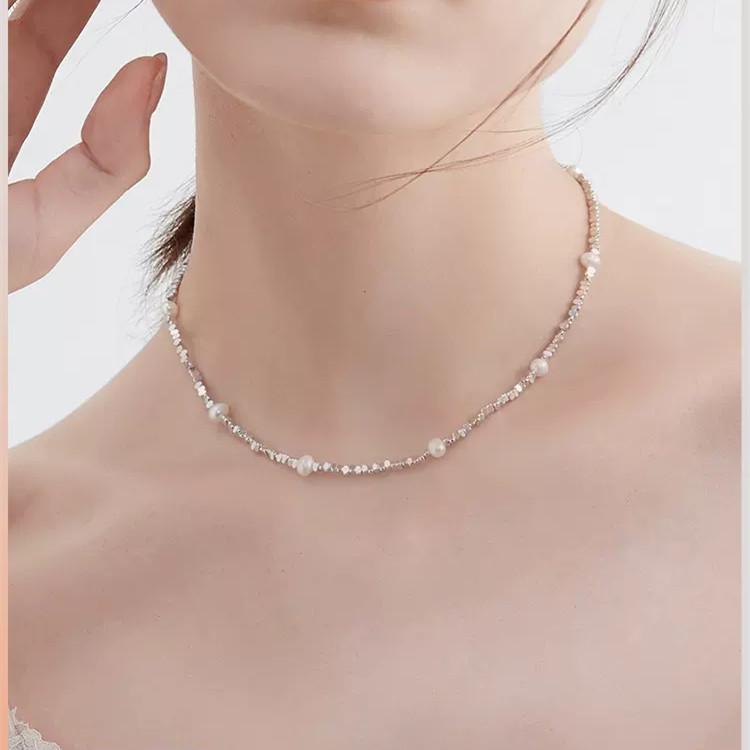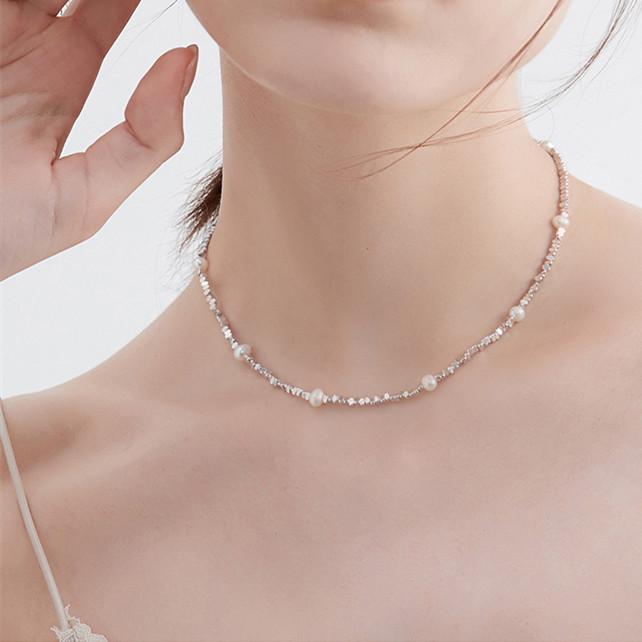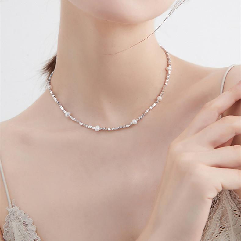 Collar de plata rota con perlas de agua dulce para mujer, diseño de nicho de lujo ligero y de alta calidad, cadena de suéter de pareja de plata rota de celebridades en línea para mujer