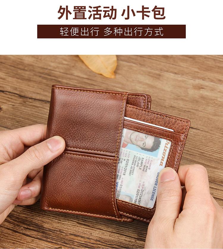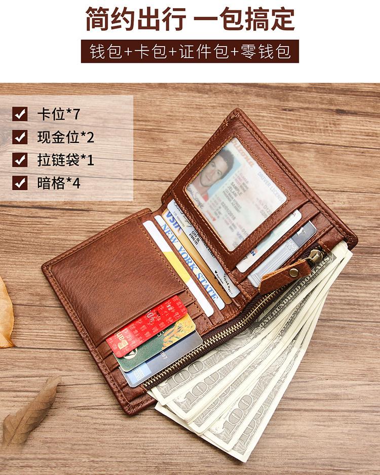 【Sección verticalestructura interna】: Ranuras para tarjetas x7, ranuras para billetes x2, bolsillo con cremallera x1, compartimentos secretos x4, ventanas para fotos x2