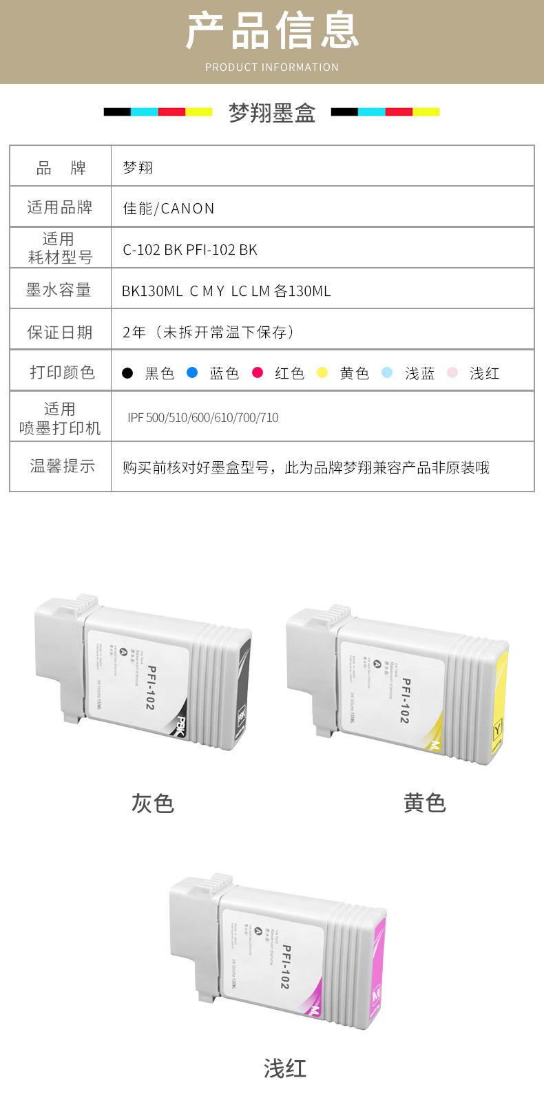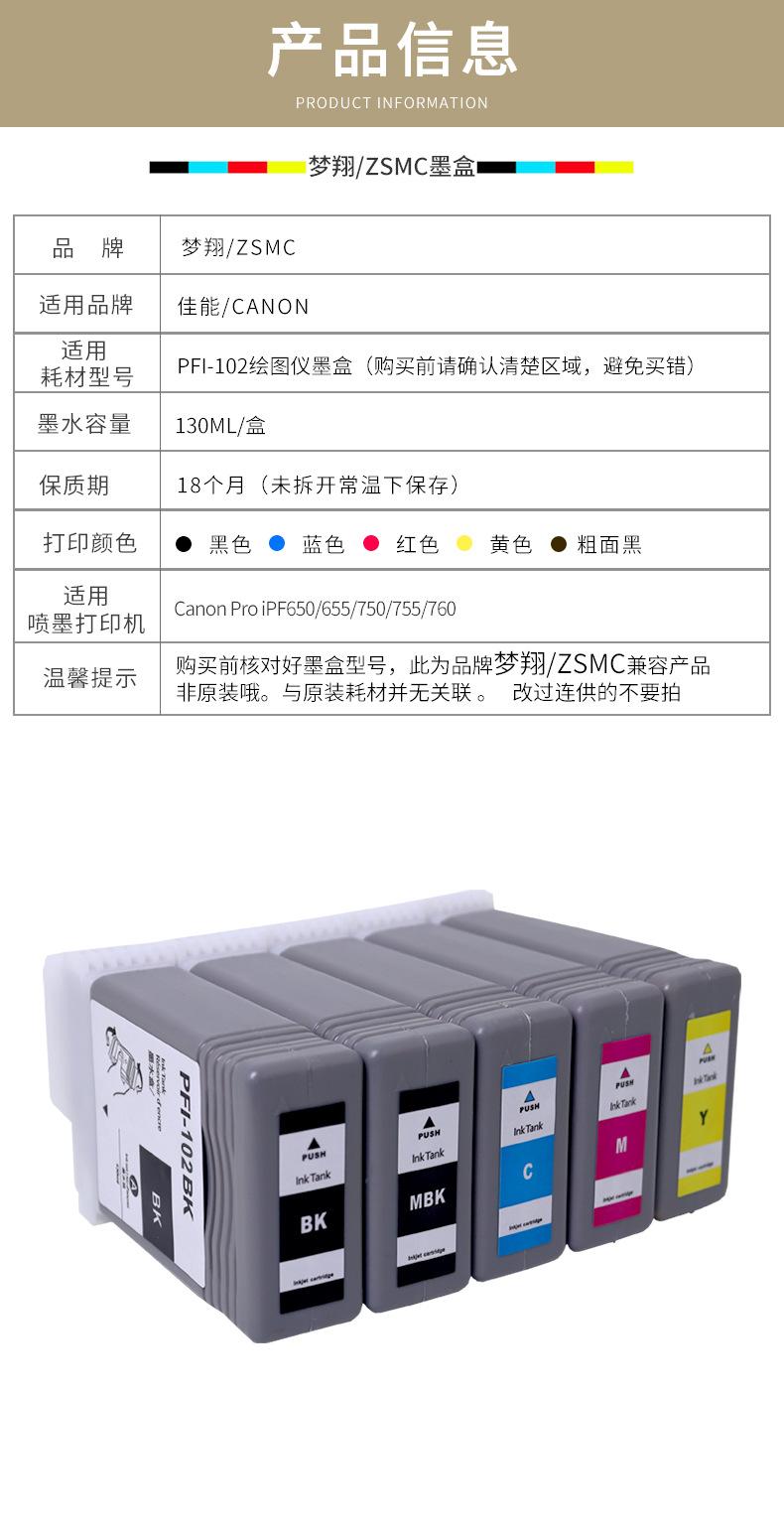 PFI-102MBK coarse black surface pigment 130ML, PFI-102BK Black Dye 130ML, PFI-102C blue 130ML, PFI-102M red 13...