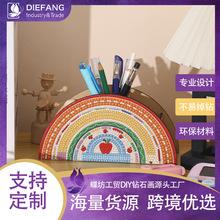 Adorno 3D de Pintura de Diamantes DIY Hecho a Mano Pieza de Madera 3D Soporte para Bolígrafos Arcoíris Adorno Placa Decoración de Escritorio Pintura de Diamantes