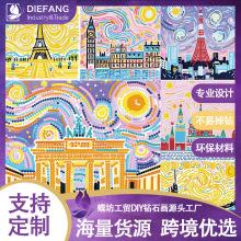 Exclusivo transfronterizo nuevo 5d lugares escénicos mundialmente famosos pintura de diamantes pintura decorativa hecha a mano diy paquete de materiales para pegar diamantes pintura de diamantes redondos
