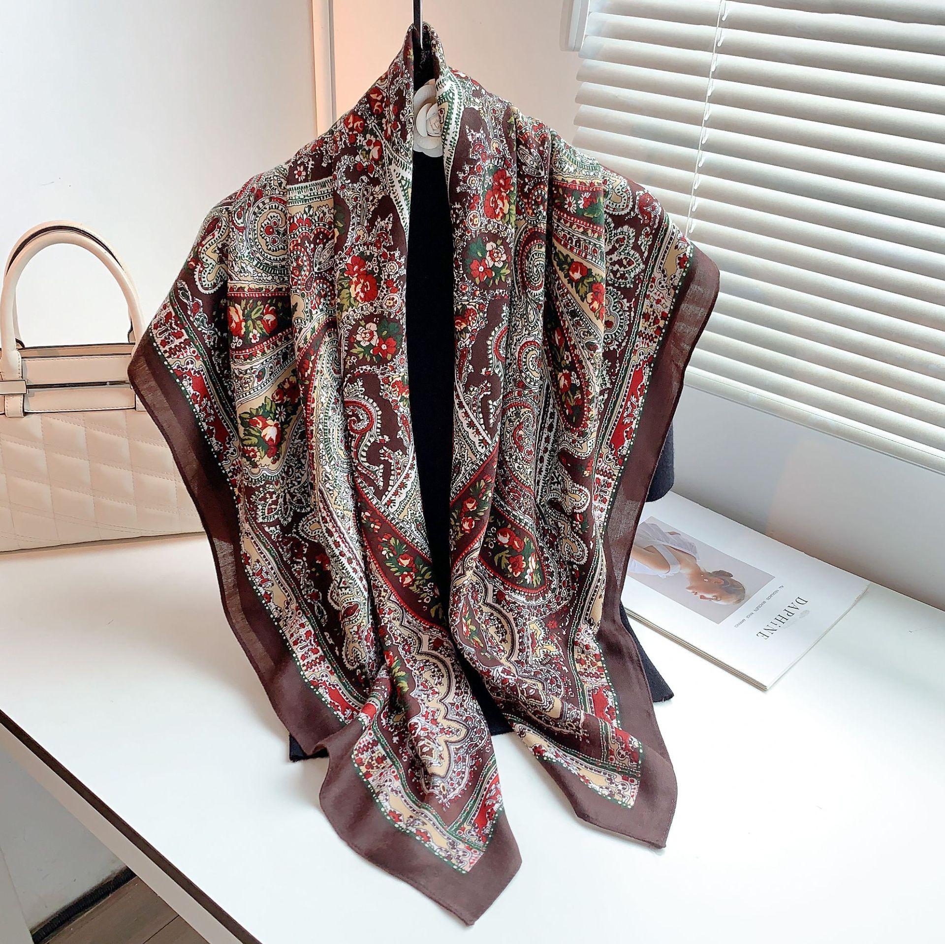 Bufanda estampada nueva europea y americana de tacto terciopelo, moda de otoño e invierno, bufanda cuadrada de gran tamaño que combina con todo, chal exterior de oficina