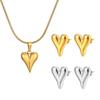 A golden heart necklace, A pair of gold love ear studs, Love ear studs a pair of steel color