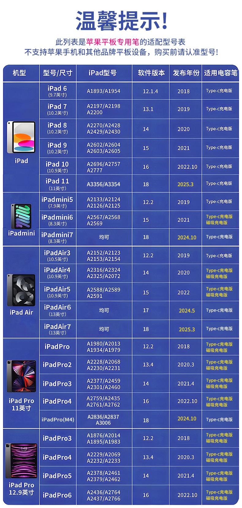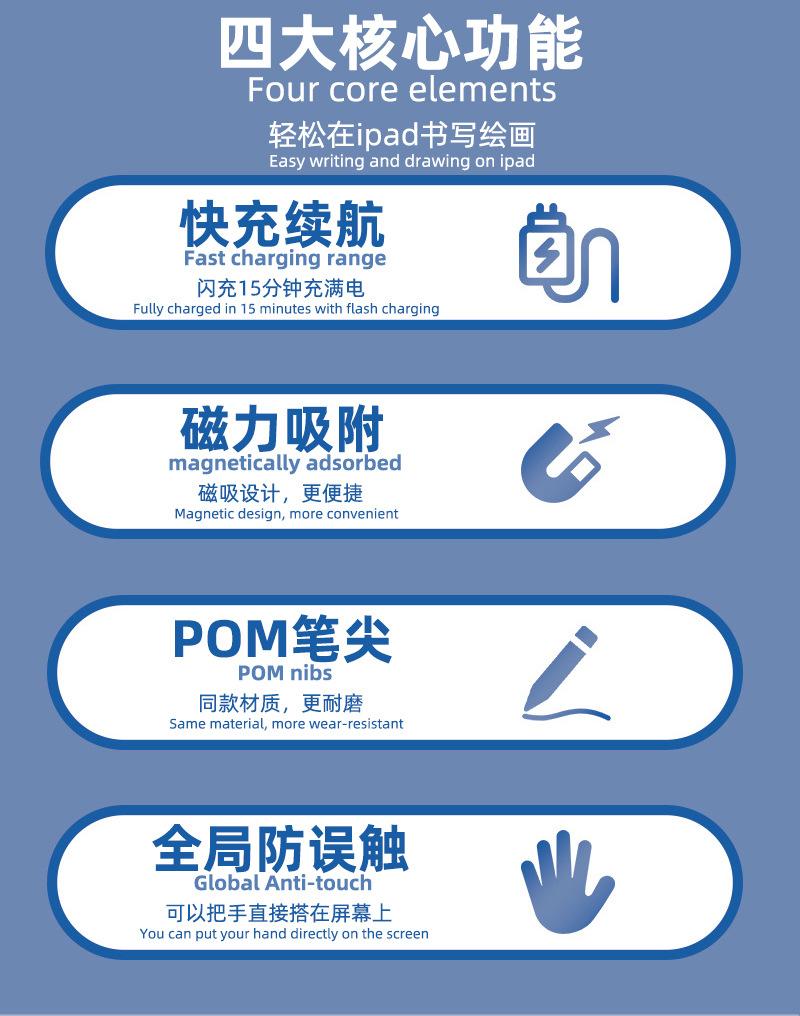 [ipad pen] type-c fast charging|One light power prompt|Touch switch, [ipad pen] type-c fast charging|Three-lig...