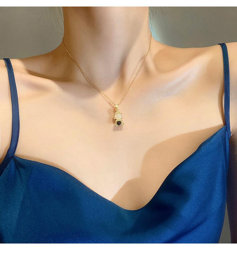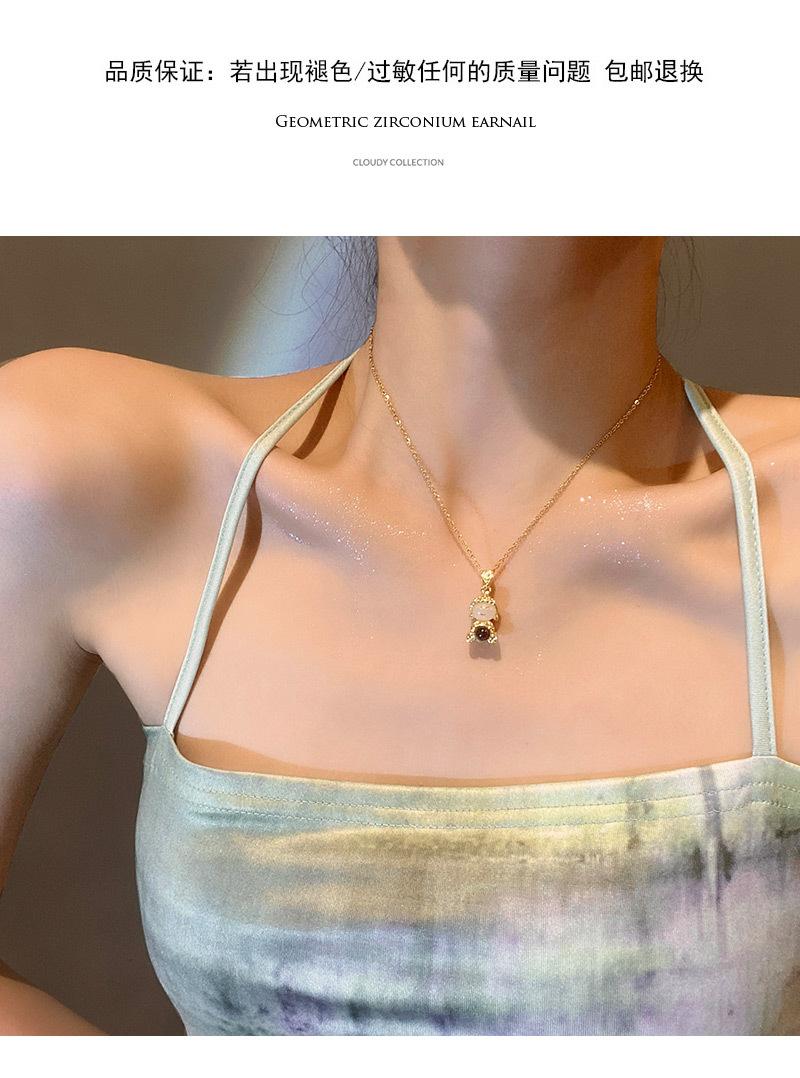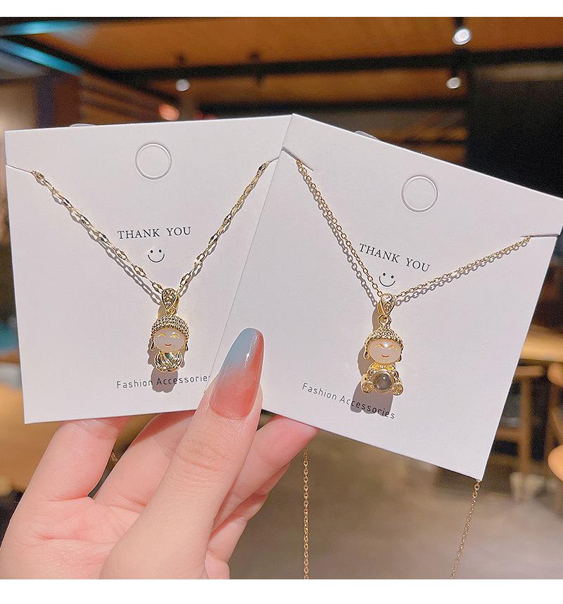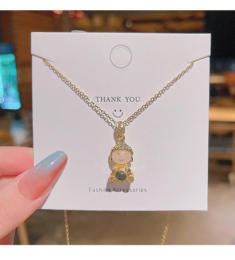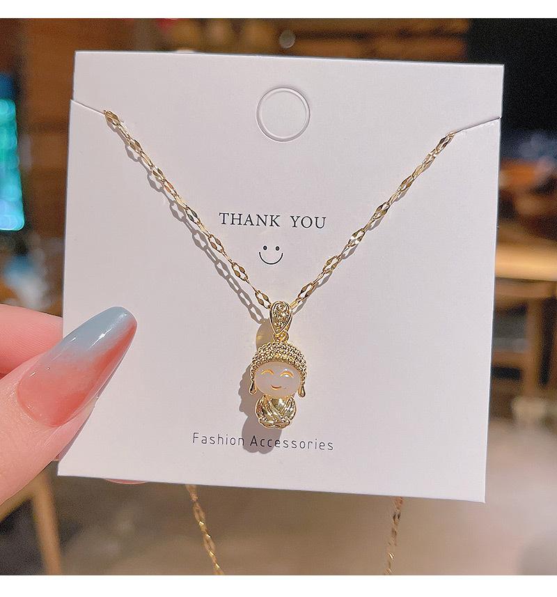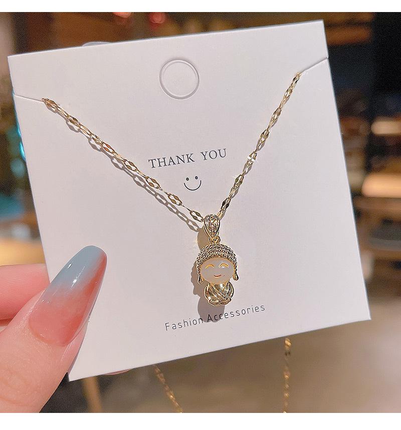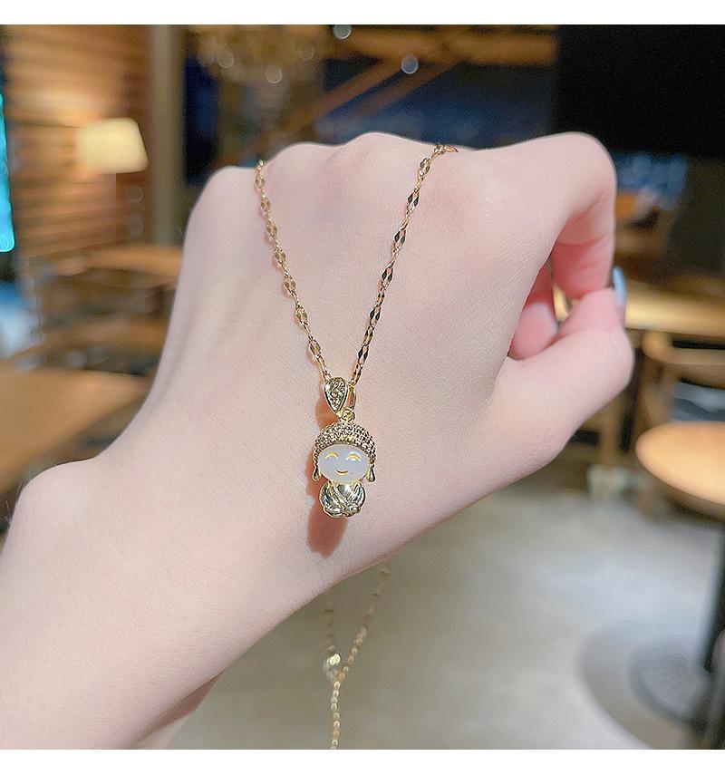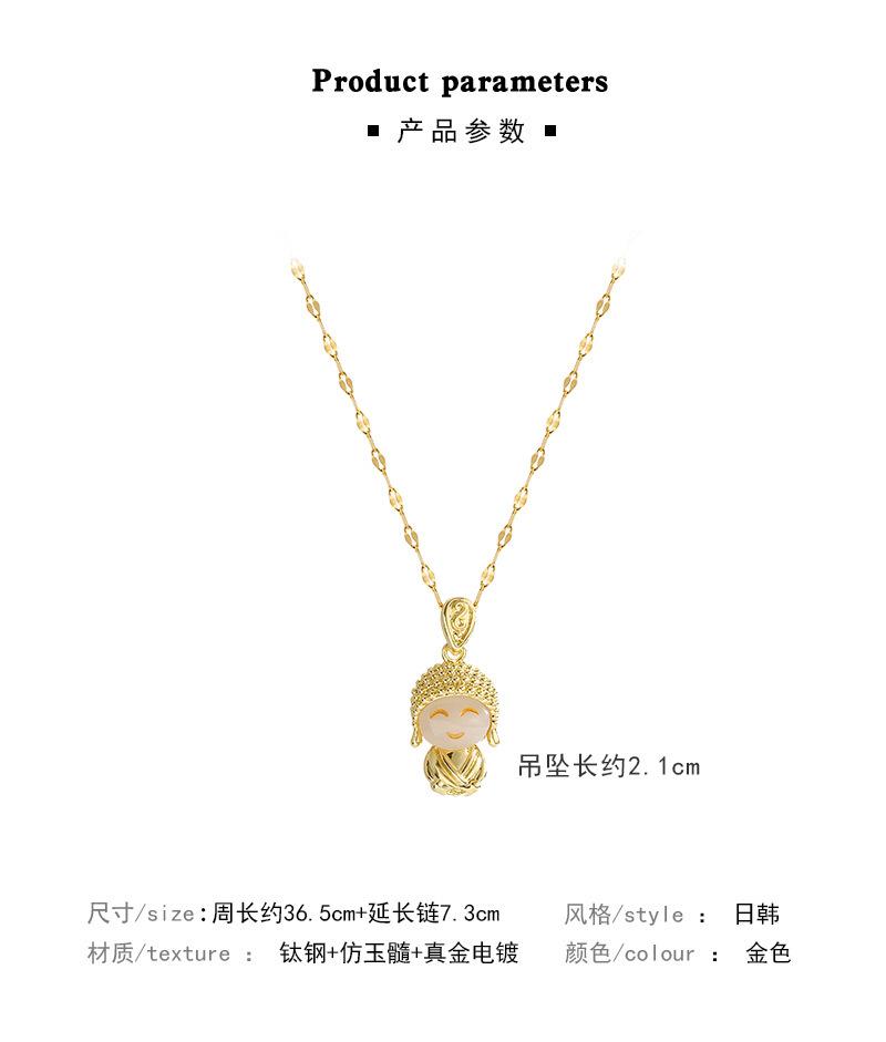 Collar de Acero de Titanio para Mujer 2021 Diseño de Tendencia Nacional Colgante de Calcedonia de Buda Maitreya Cadena Clavicular Accesorios Mismo Estilo Douyin
