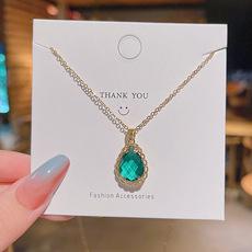 Collar de acero de titanio con colgante de diseño esmeralda de estilo nacional nuevo 2021 para mujer, cadena para clavícula de moda ins, estilo de celebridad de internet