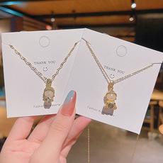 Collar de acero de titanio 2021 para mujer, colgante de circonita brillante con forma de corazón, cadena de clavícula, collar de moda Douyin