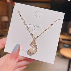 Collar de Acero de Titanio con Colgante de Perla Pluma de Diseño Nuevo de Dongdaemun de Corea del Sur Estilo Similar de Cadena para Clavícula Ins Chao Douyin