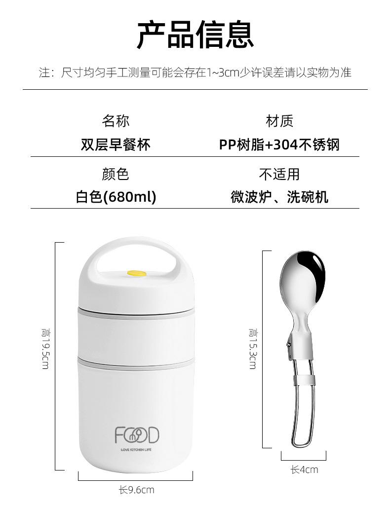 Peso del producto: capa individual alrededor de 205g (incluido el embalaje) doble capa 300g, bolsa 84g, cuchara plegable 27g