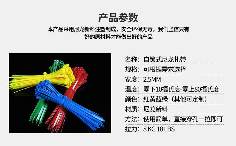 Características del producto:Resistencia al frío, resistencia a la tracción, resistencia al desgaste, buena tenacidad, alta resistencia, fácil de usar, fijación autoblocante.