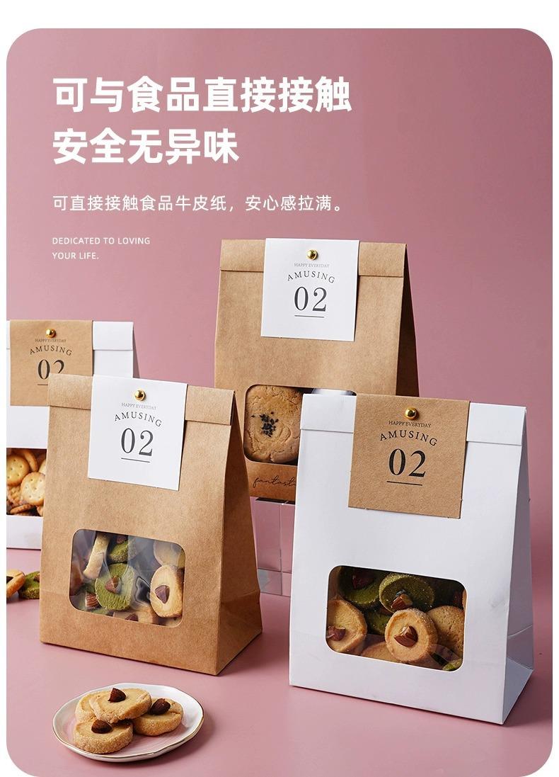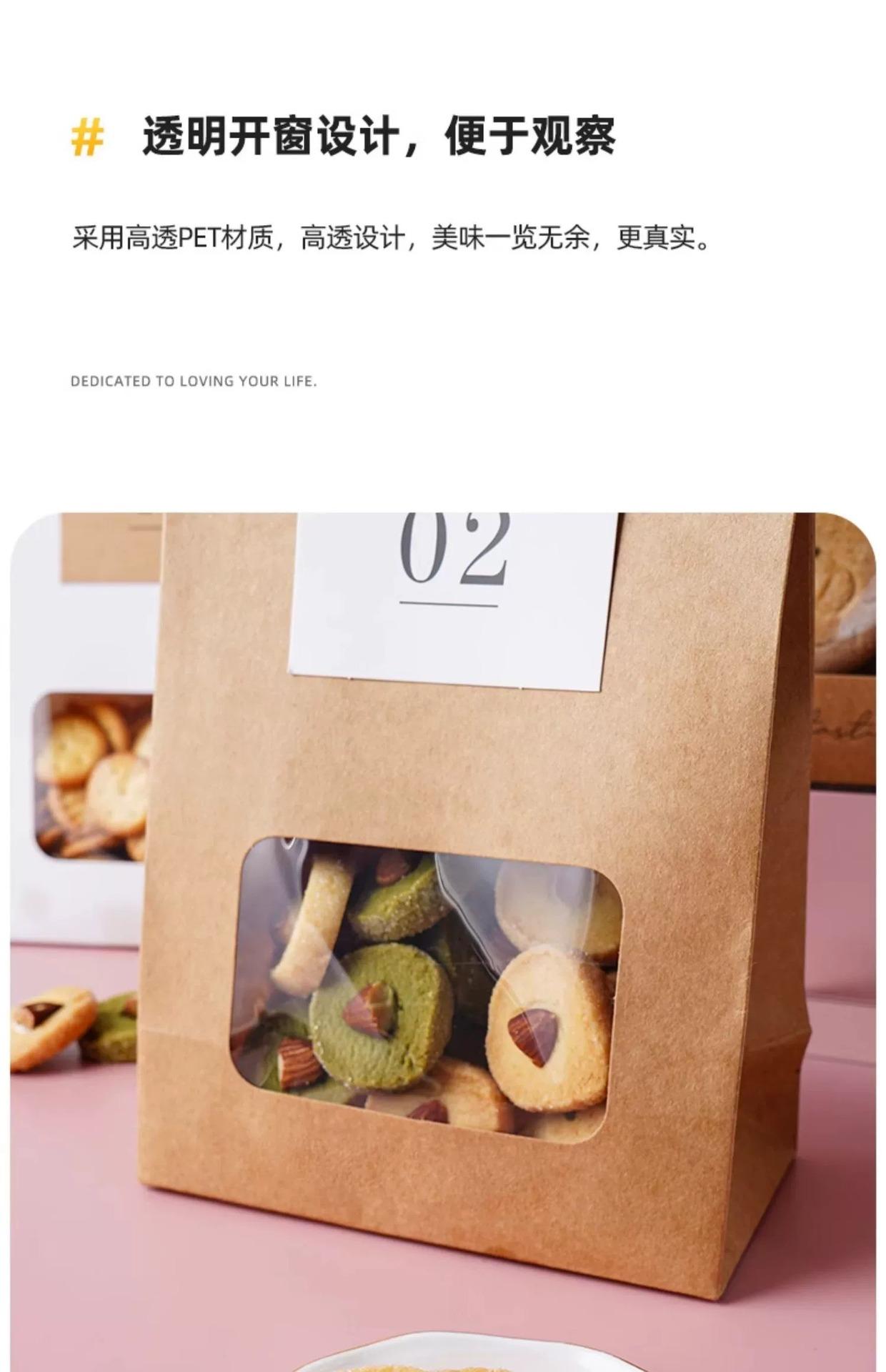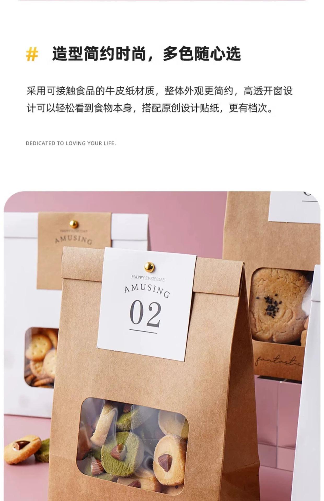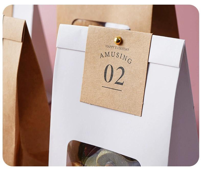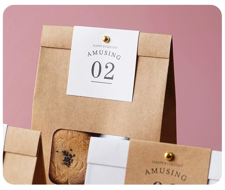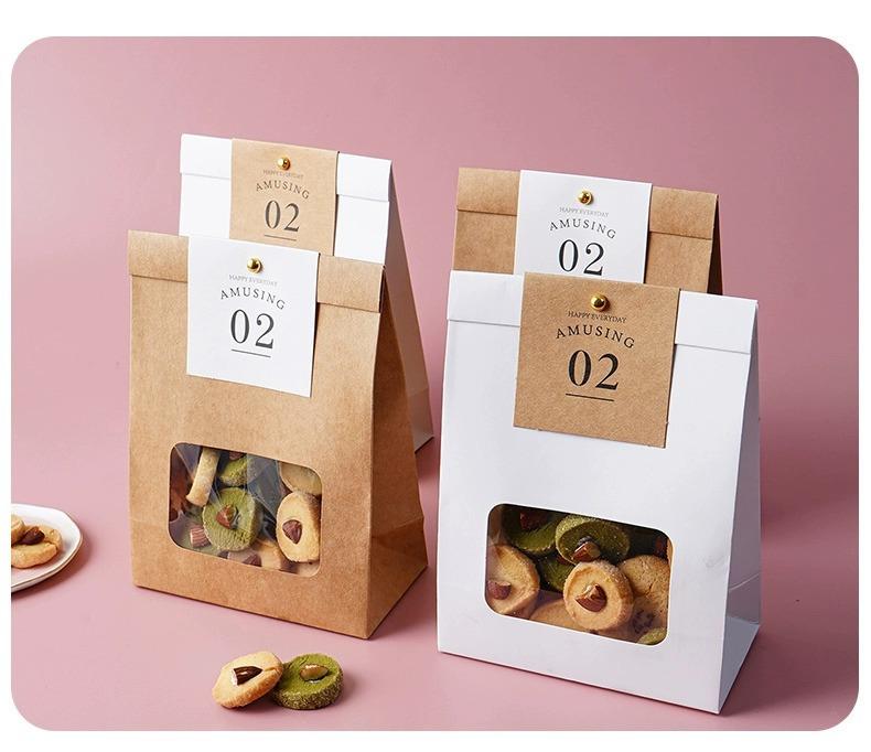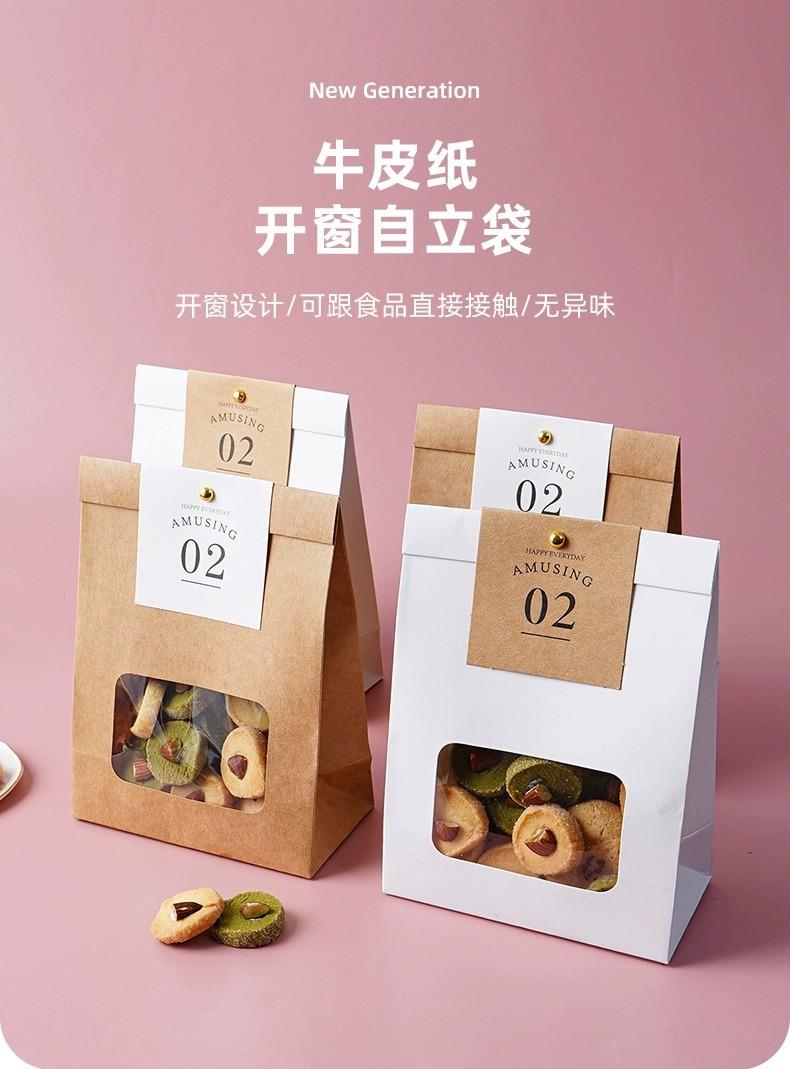 Bolsa de embalaje para galletas, bolsa autoportante crujiente con copos de nieve, bolsa de papel kraft con ventana, bolsa de turrón para dulces, fábrica al por mayor