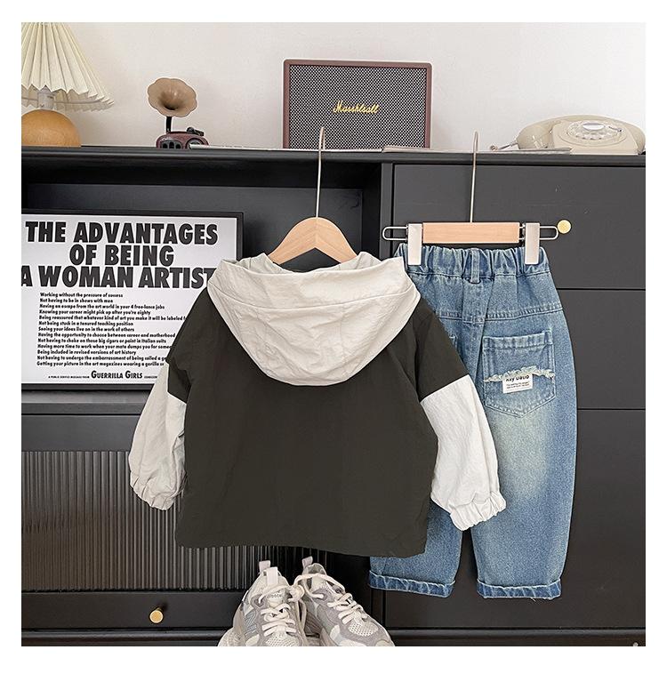 Xianao 2023 otoño nuevo deportivo para niños con capucha chaqueta para niños estilo coreano color de contraste letra chaqueta para niños moda