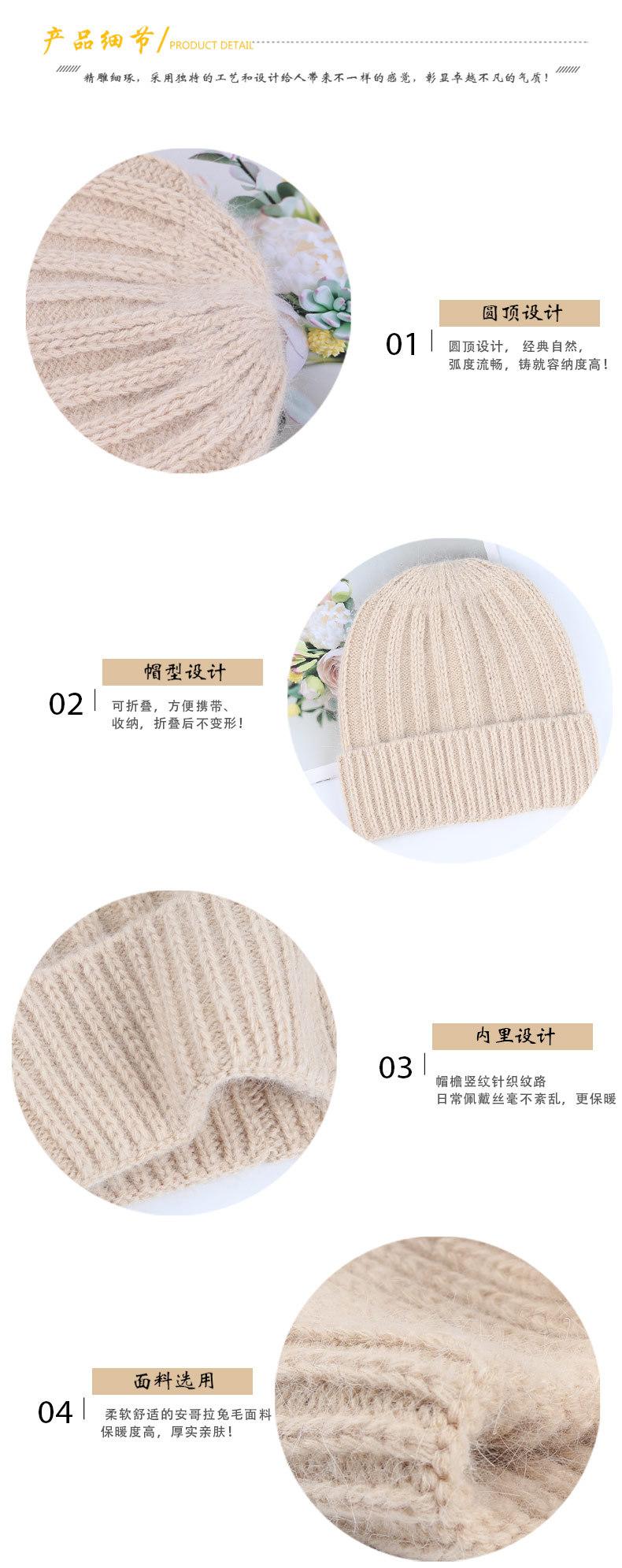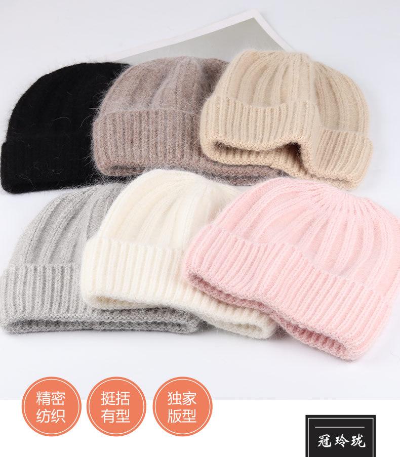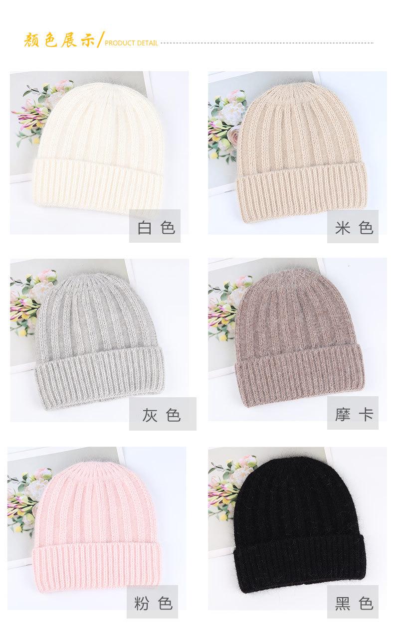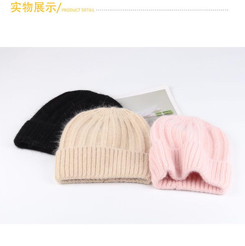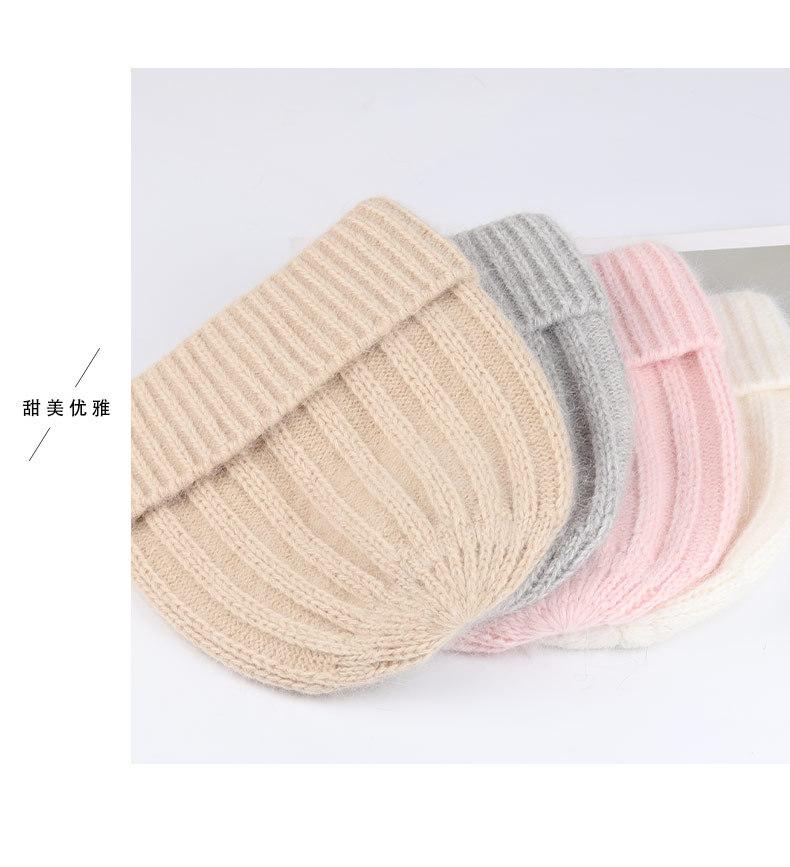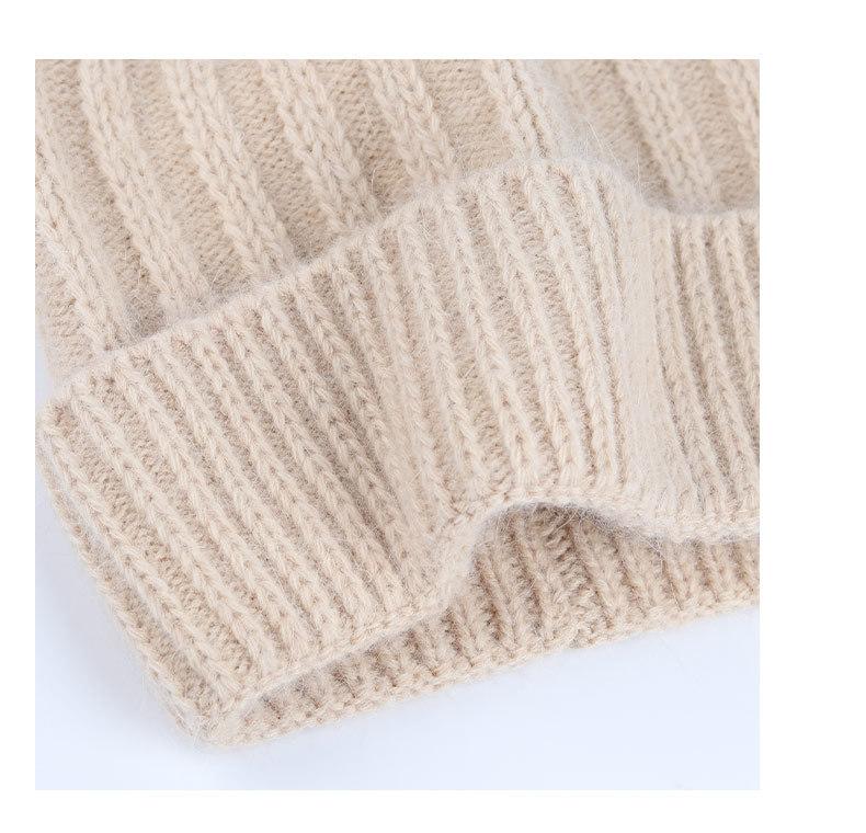 Gorro de punto jacquard de piel de conejo, moda de otoño e invierno, estilo coreano, gorro tipo pullover, gorro de lana cálido a prueba de viento para exteriores, gorro de felpa para mujer