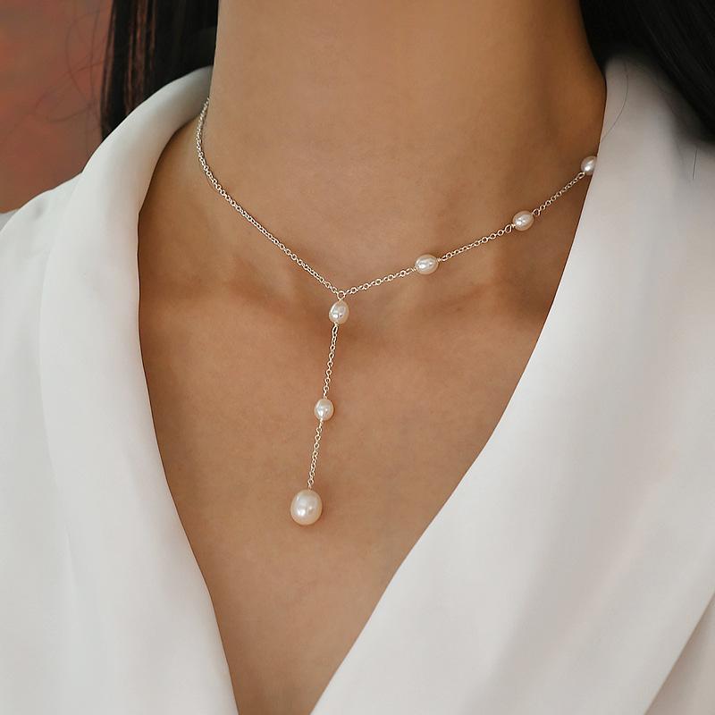 Collar de perlas naturales de agua dulce con diseño de nicho, cadena de clavícula de lujo de alta calidad, collar de borlas estrelladas a juego para mujer