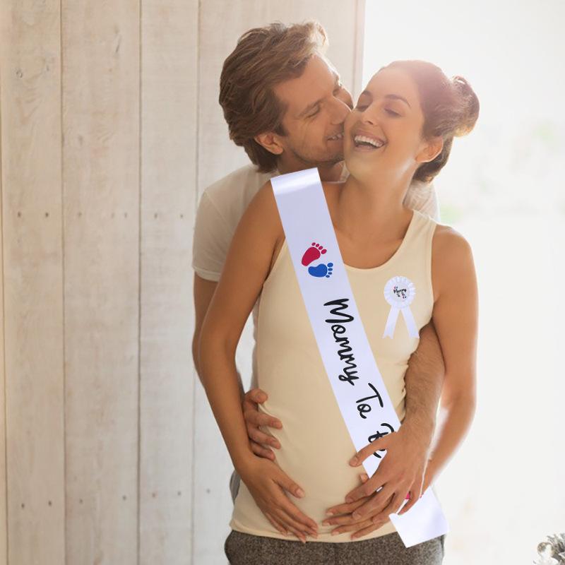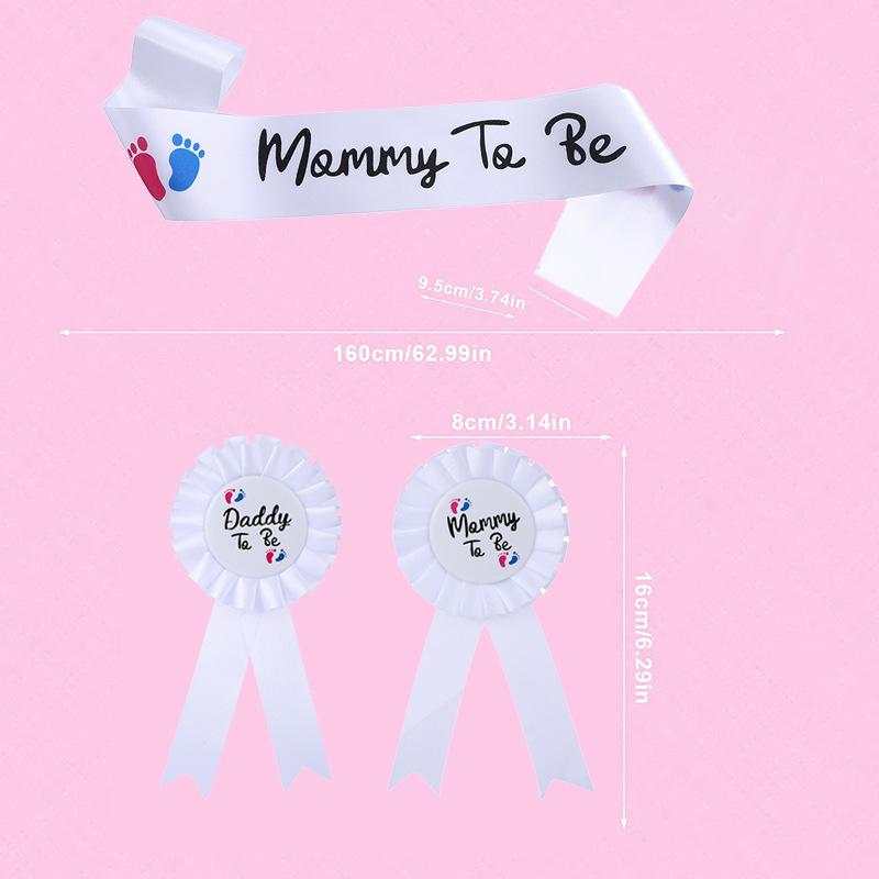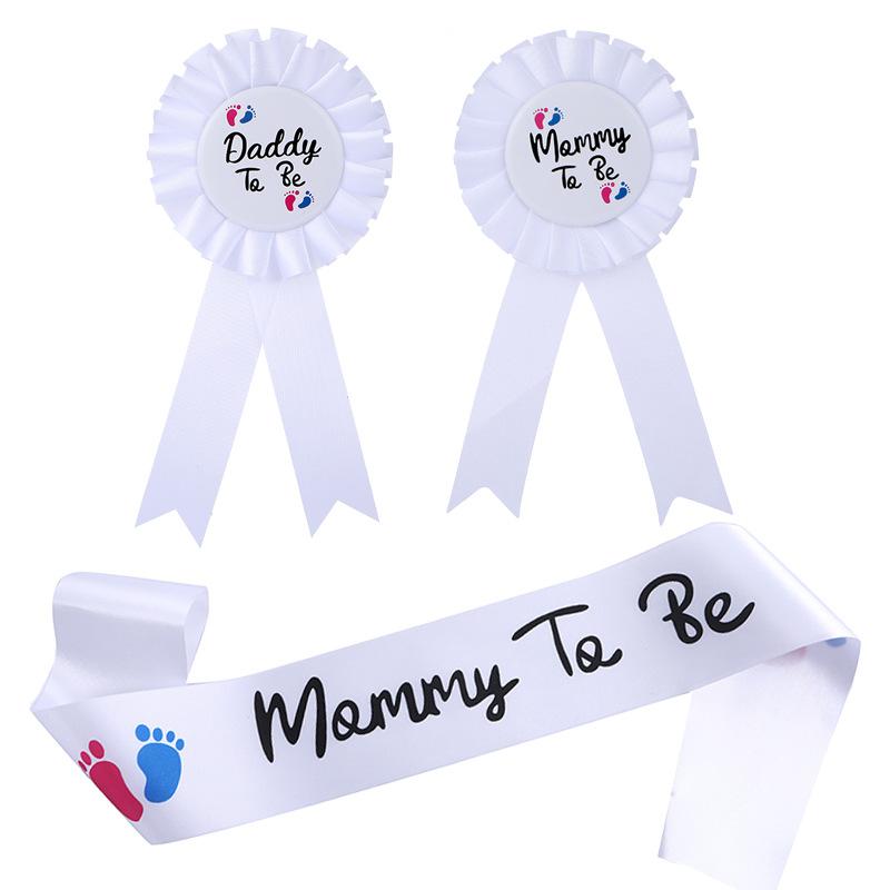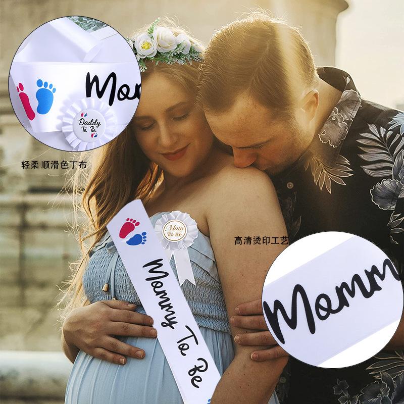 Three-piece set, Mommy to be shoulder strap, Mommy to be badge, Daddy to be Badge