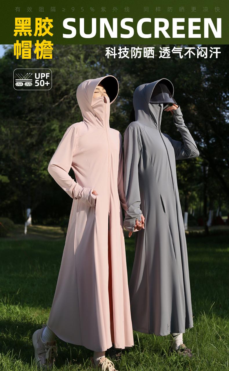 Ropa de Protección Solar Larga para Mujer Verano Protección UV Mejorada Ala de Goma Negra Cuerpo Completo Upf50+ Seda de Hielo Transpirable Ropa de Protección Solar