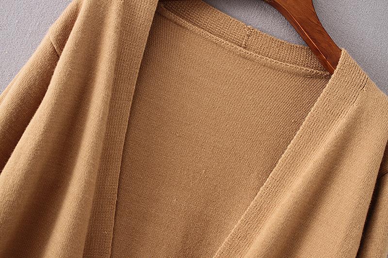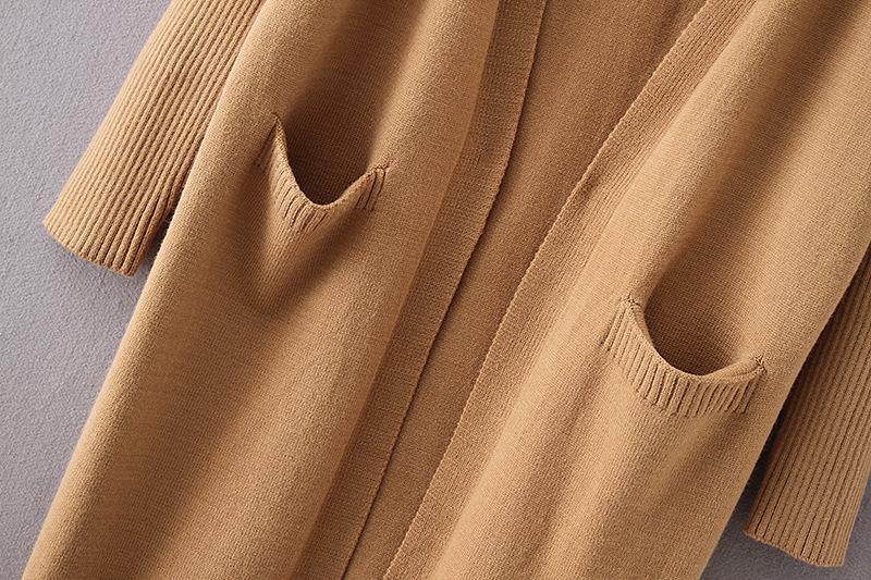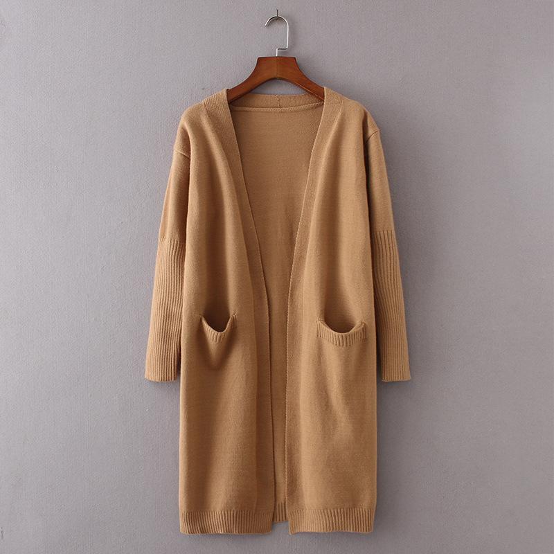 Suéter de comercio exterior de estilo europeo y americano de otoño e invierno de Amazon, cárdigan largo de punto con doble bolsillo para mujer