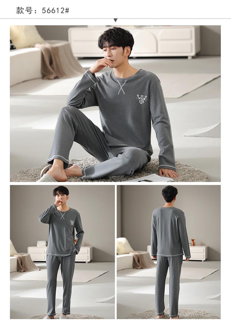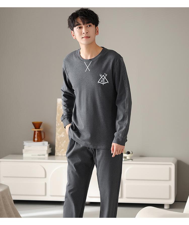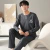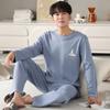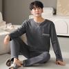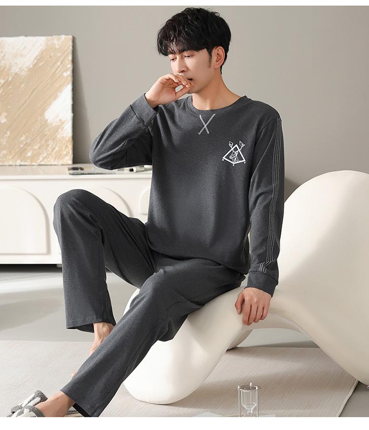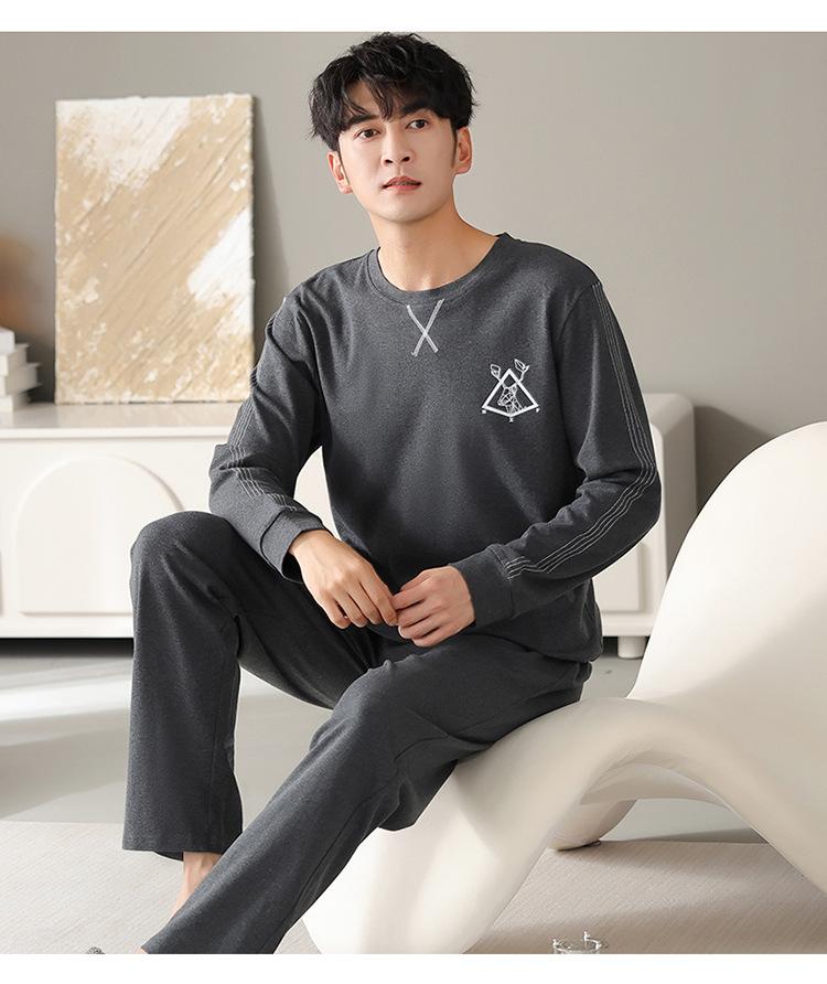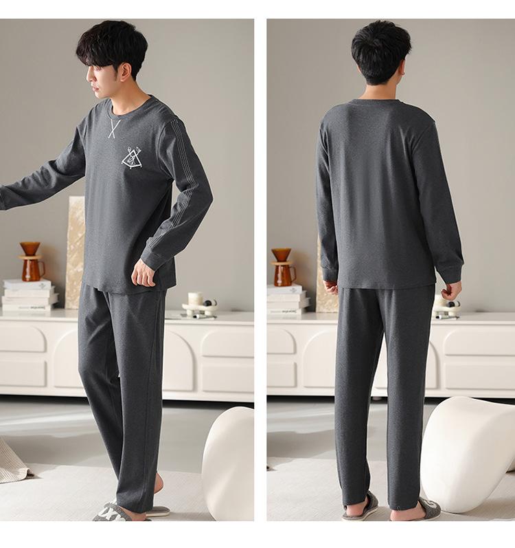 Pijamas nuevos de algodón ajustado para hombre, de manga larga, de doble cara, para otoño e invierno, holgados, de talla grande, para adolescentes, ropa de casa, venta al por mayor