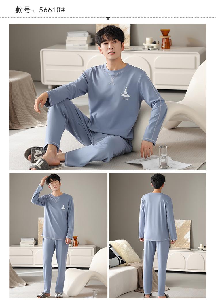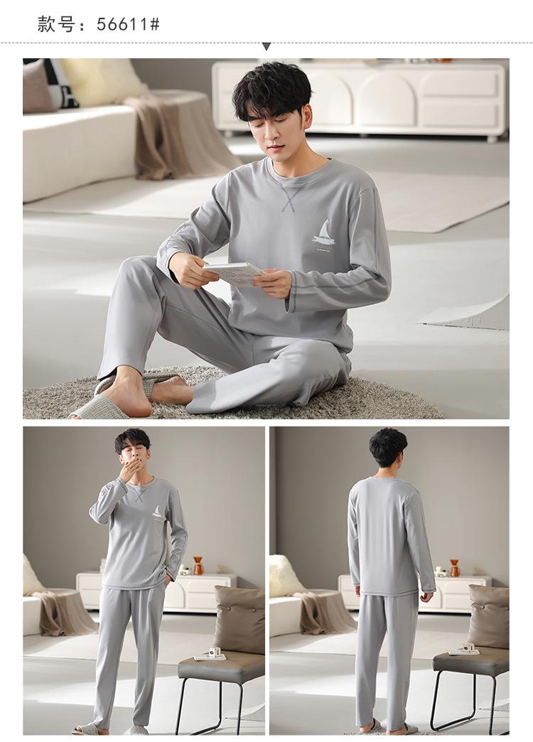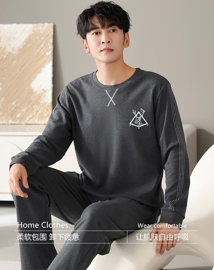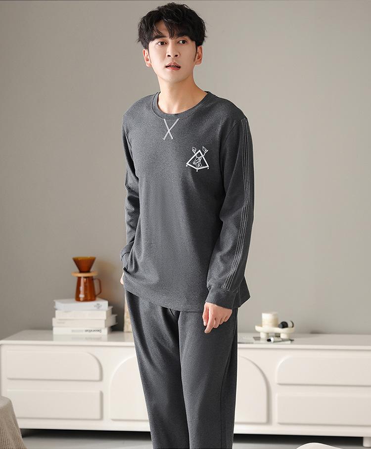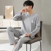 Pijamas nuevos de algodón ajustado para hombre, de manga larga, de doble cara, para otoño e invierno, holgados, de talla grande, para adolescentes, ropa de casa, venta al por mayor