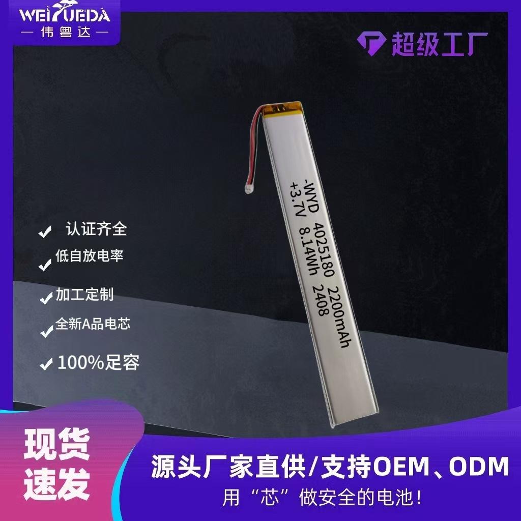 Batería de polímero de litio Weiyueda 4025180 de 2200 mAh y 3,7 V para instrumentos de belleza de aviones de control remoto.